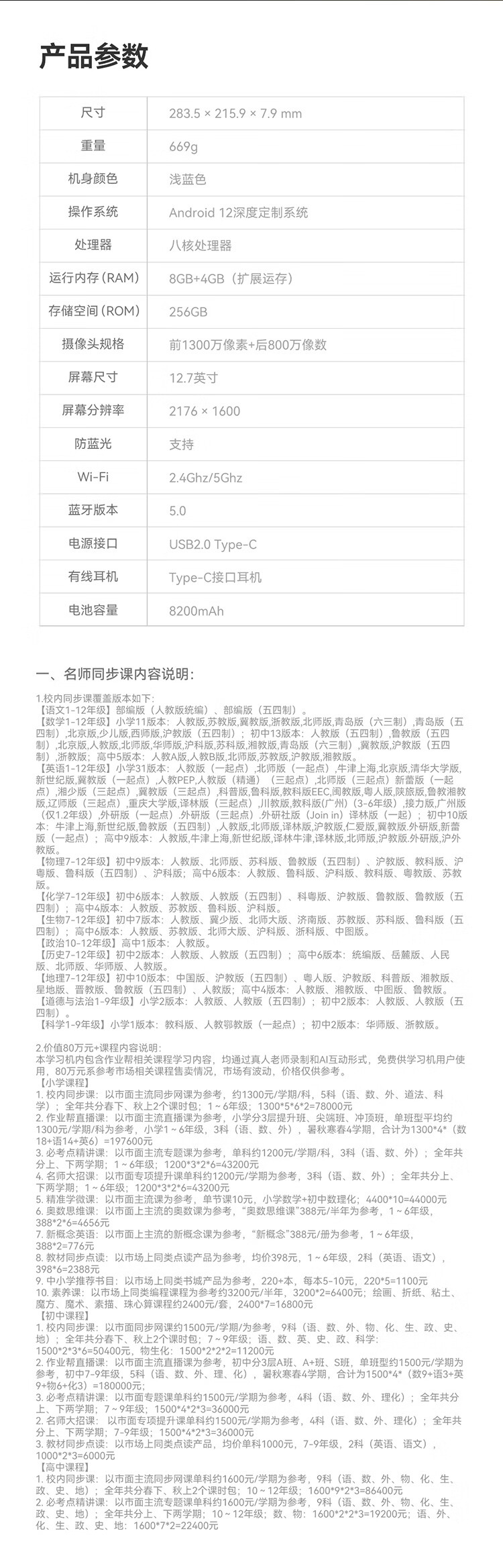 作业帮&碳氧 学习机 T30 8+256G 浅蓝色(单位:台)