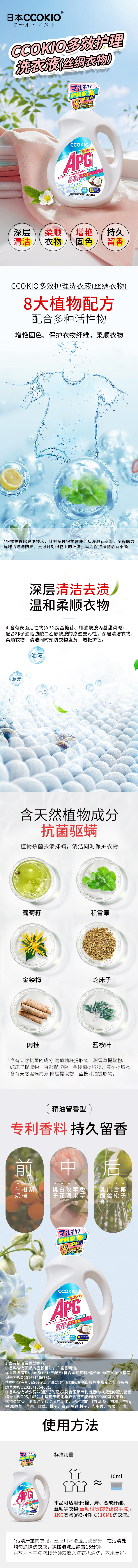 酷优客(CCOKIO) APG精油留香型洗衣液 多效护理型 2kg*1瓶 白色(单位:组)