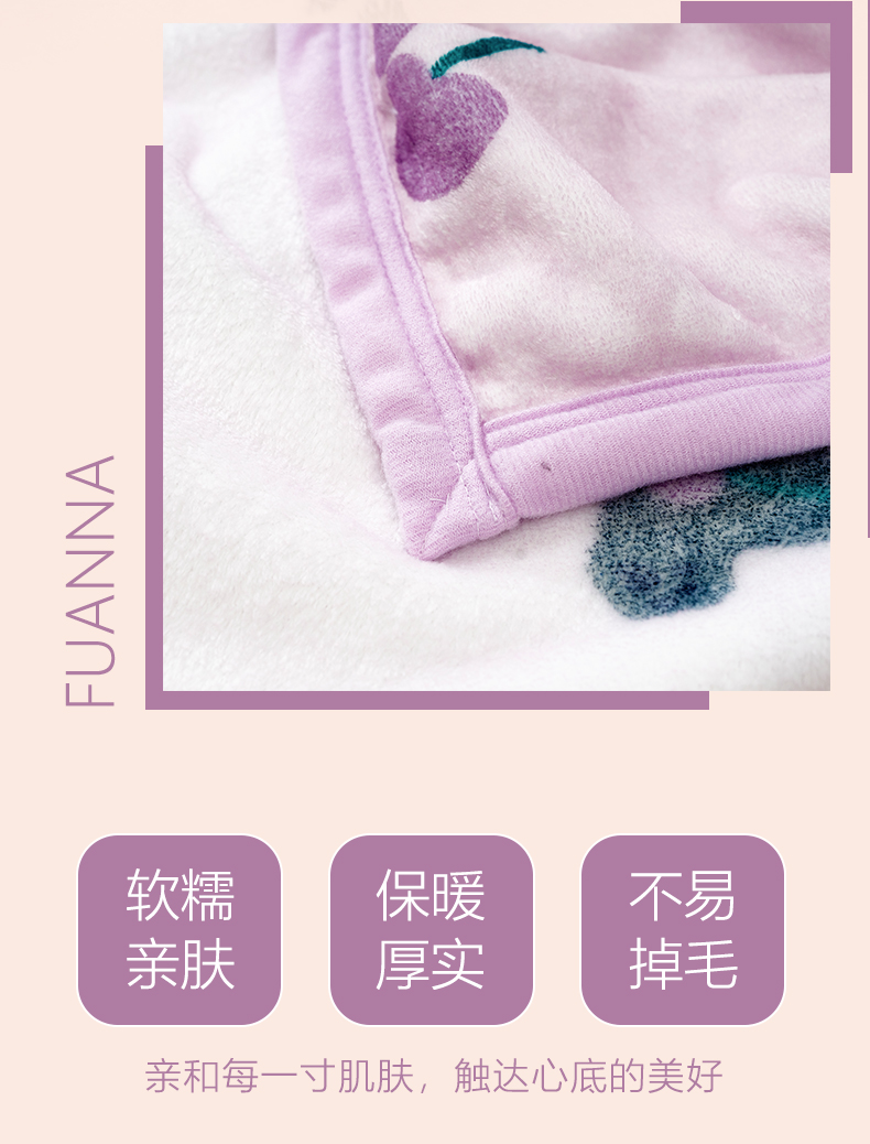 富安娜 亲肤舒绒毯 沁甜 713102978 150*200cm 粉色(单位:条)