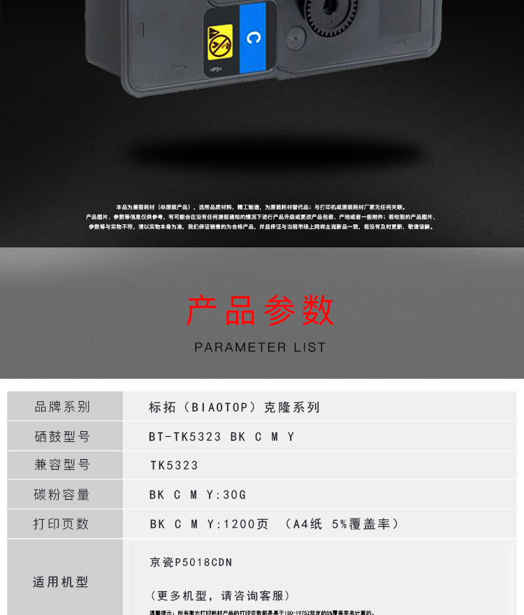 标拓 (Biaotop) TK5323彩色墨粉盒适用京瓷P5018CDN打印机 蓝色 蓝色