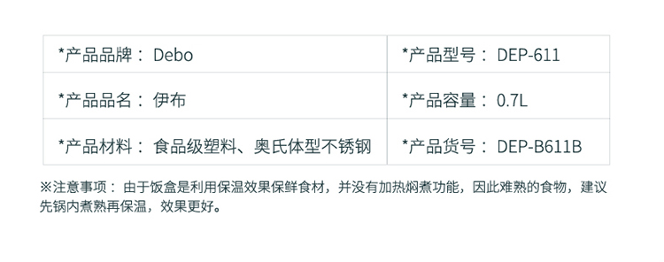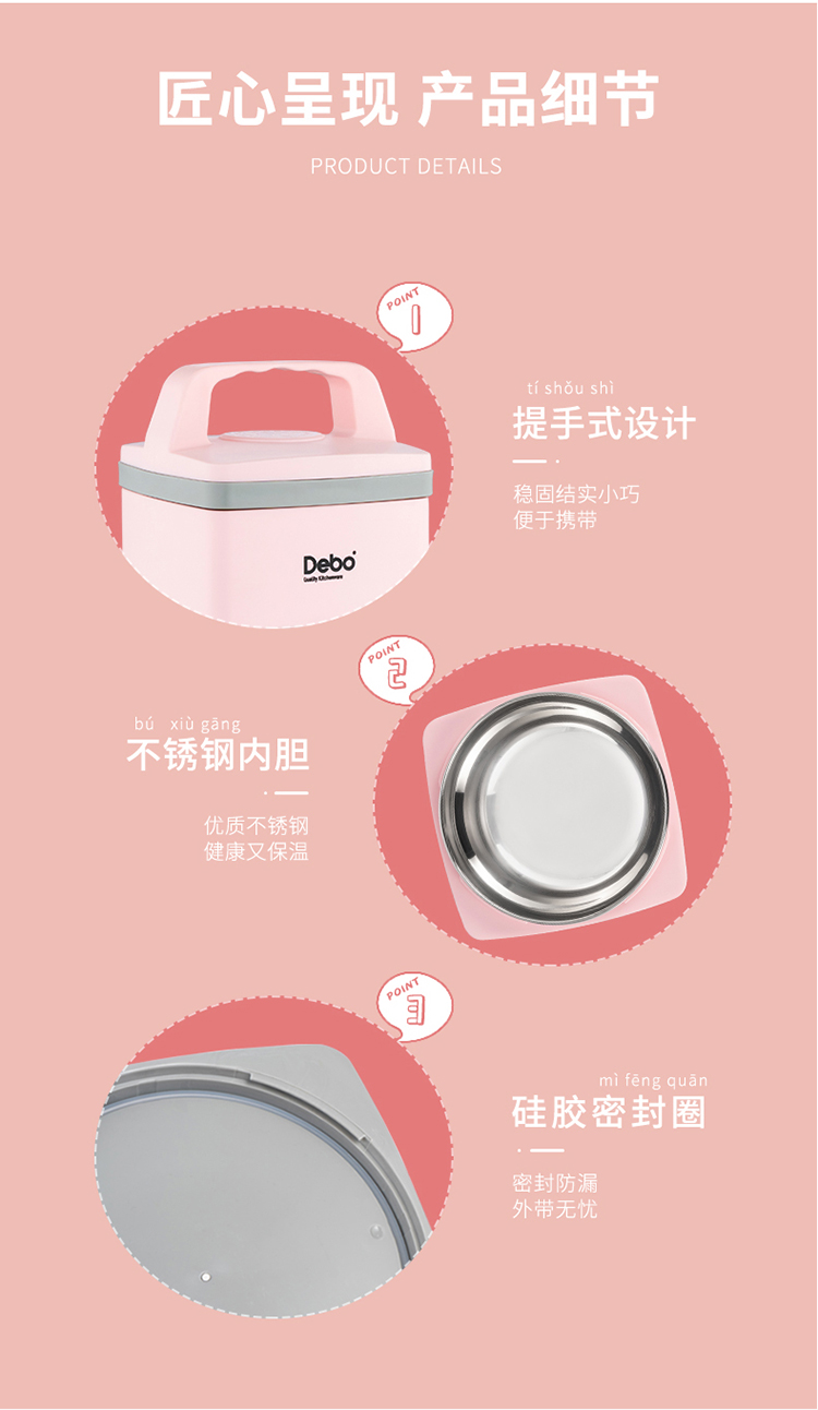 Debo德铂 0.7L伊布饭盒DEP-611 粉色