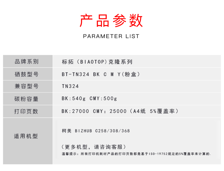标拓 (Biaotop) TN324彩色墨粉筒适用柯美bizhub C258/C308/C368复印机 克隆系列 黄色 黄色