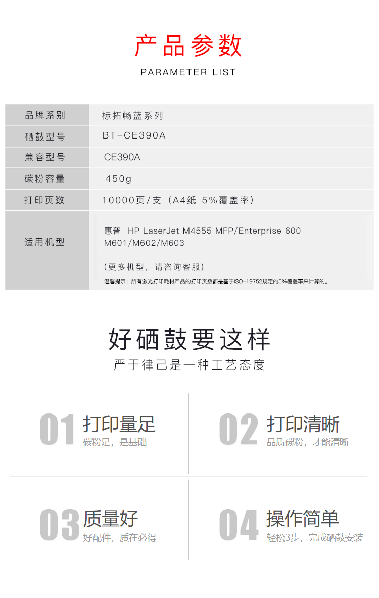 标拓 (Biaotop) CE390A硒鼓适用惠普HP LaserJet M4555 MFP/Enterprise 600/M601/M602/M603打印机 畅蓝系列 黑色 黑色