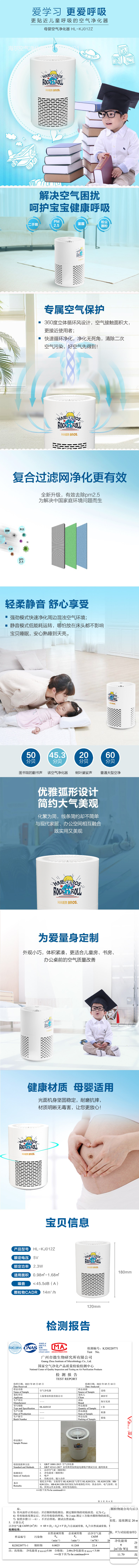 海尔兄弟(HAIERBROS) 空气净化器 除菌99% 除霾除异味 HL-KJ012Z(单位:台) 本白色
