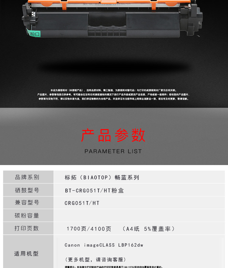 标拓 (Biaotop) CRG051黑色标准容量墨粉盒适用佳能MF269dw/266dn/LBP162dw打印机 黑色 黑色