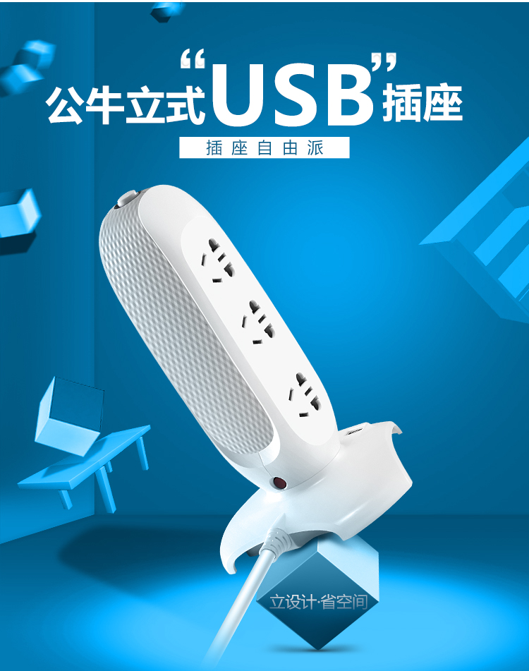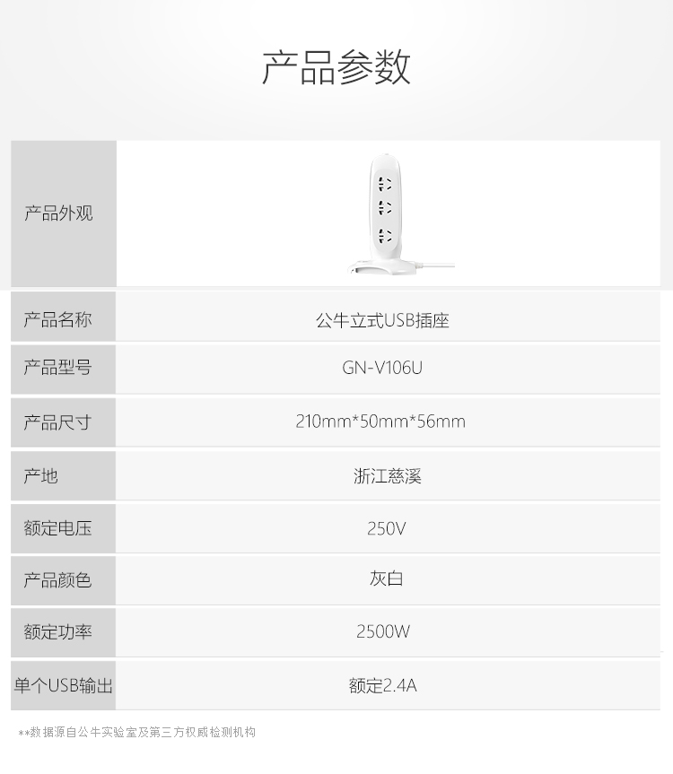 公牛BULL立式插坐带USB插座V106U 白色