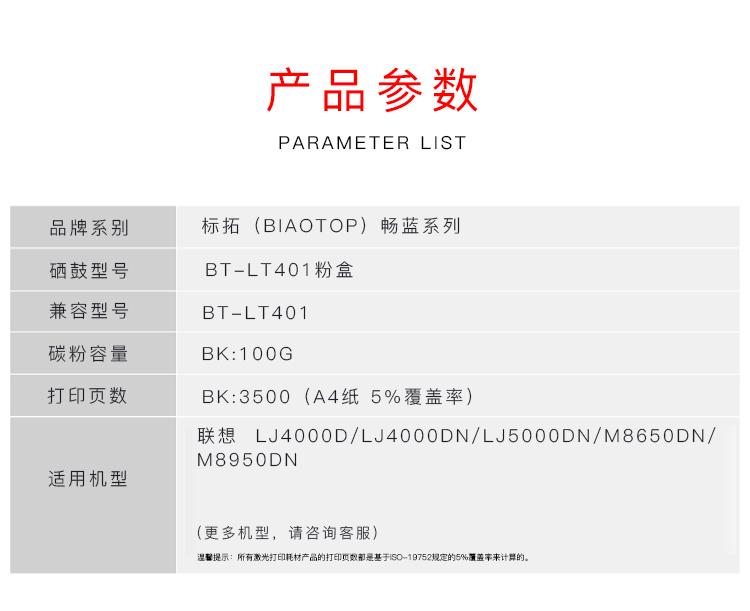 标拓 BT-LT401 3500页 适用联想LJ4000D LJ4000DN 粉盒 1.00 只/支 (计价单位:支) 黑色