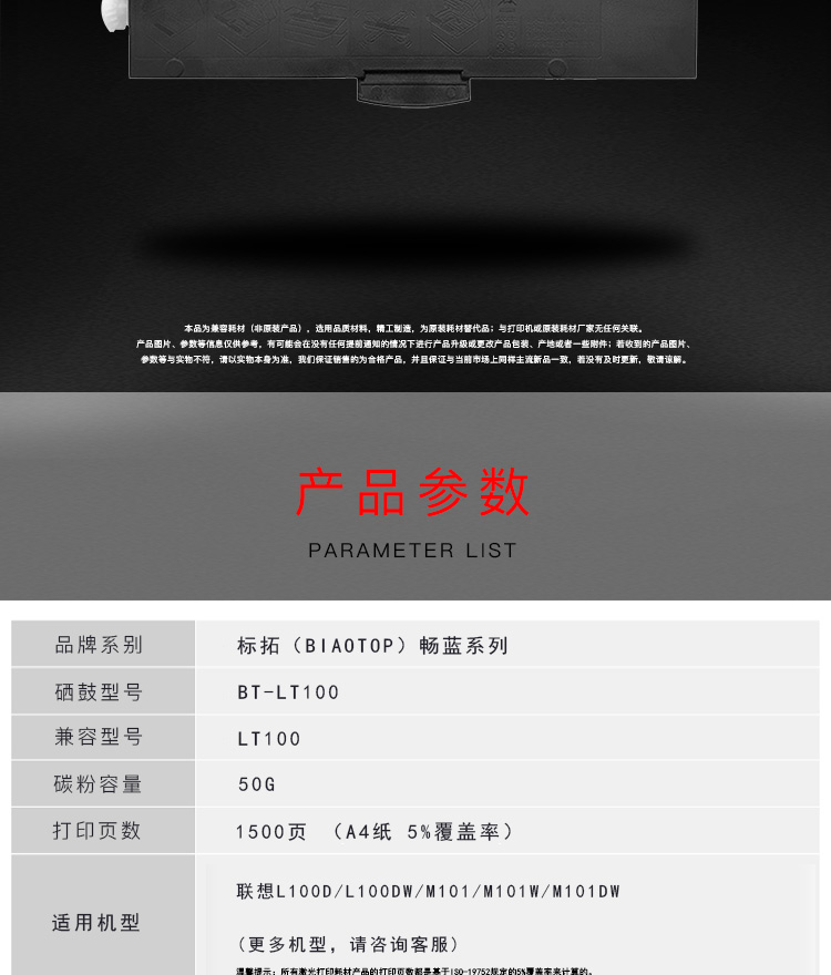 标拓 (Biaotop) LT100粉盒适用联想L100D/L100DW/M101/M101W/M101DW打印机 黑色 黑色