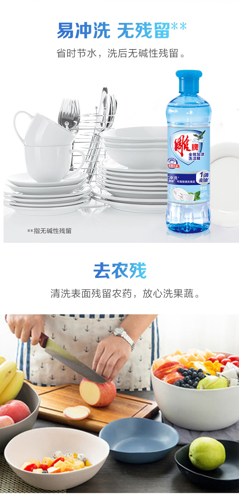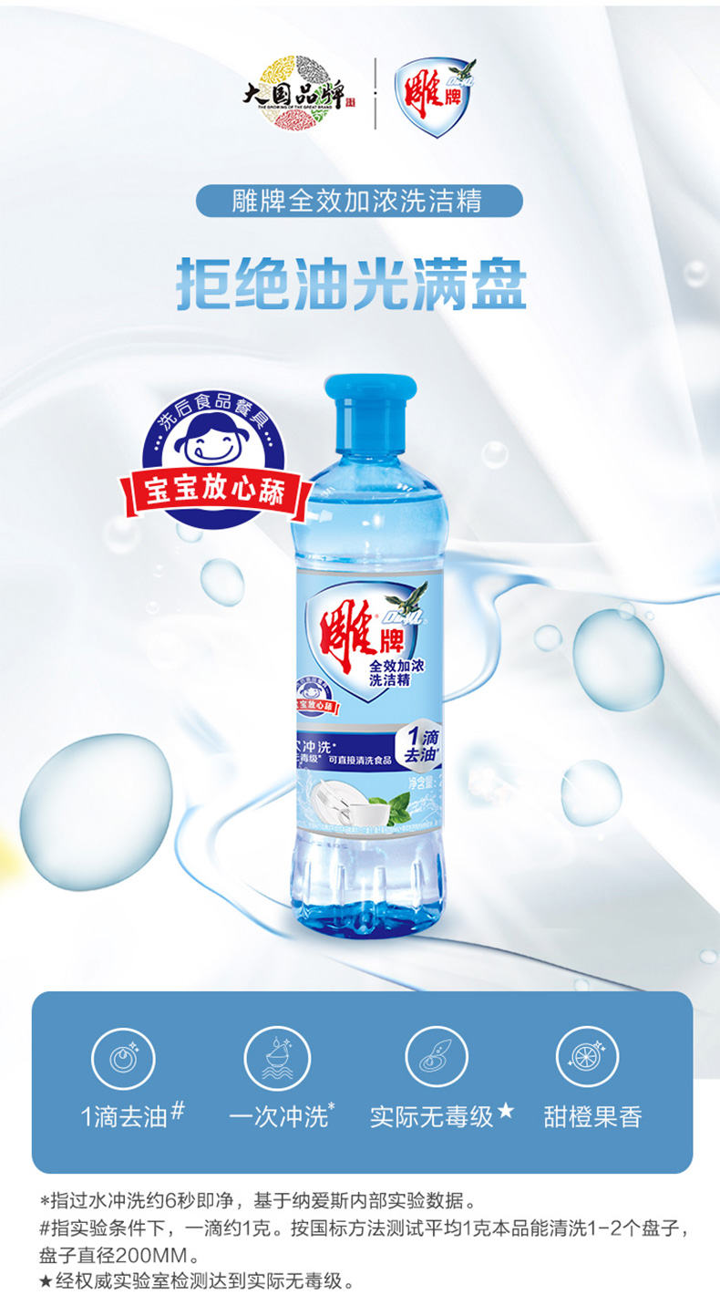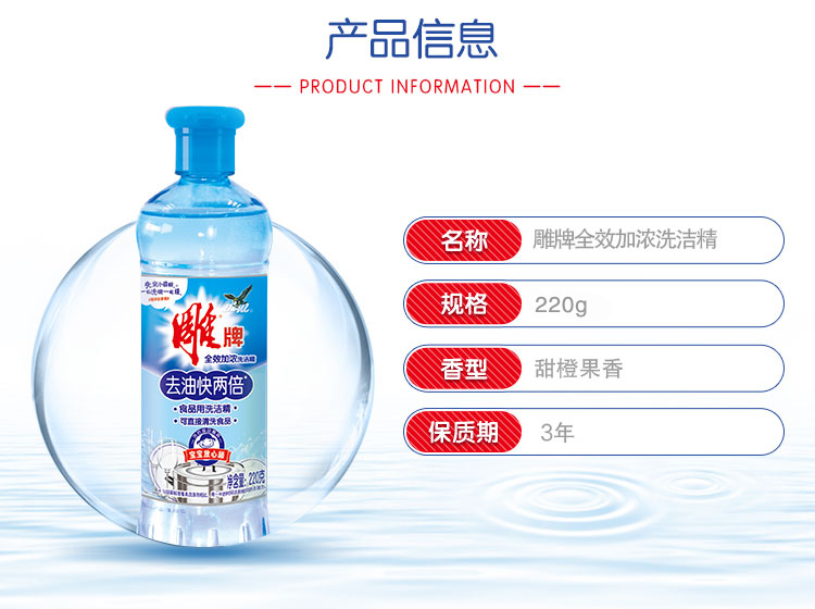 雕牌 全效加浓洗洁精 220g 无磷配方易冲洗 蓝色(单位:瓶)