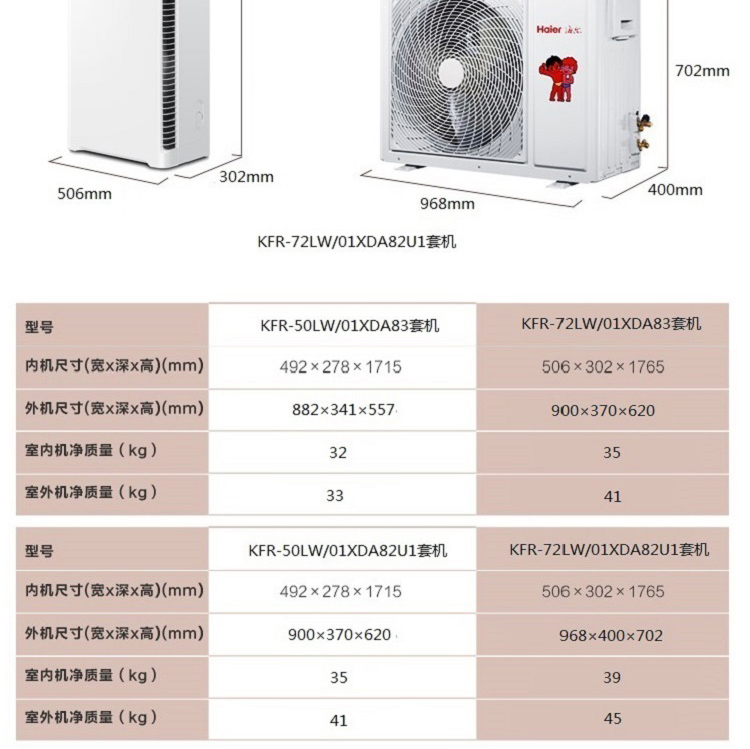 海尔 3匹 柜式变频客厅冷暖空调KFR-72LW/01XDA82U1 本白色