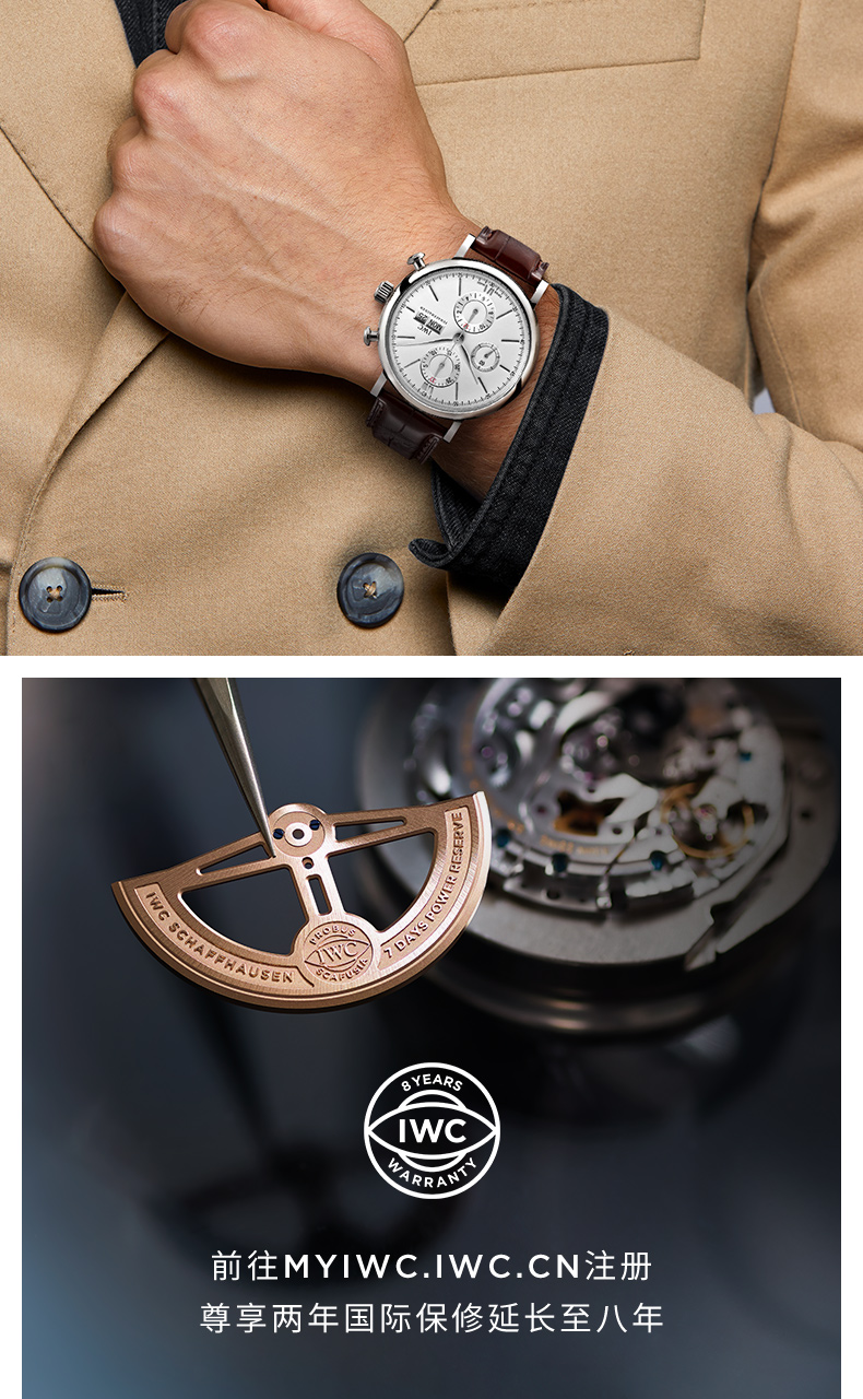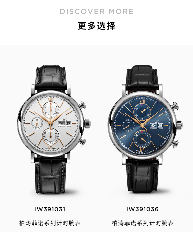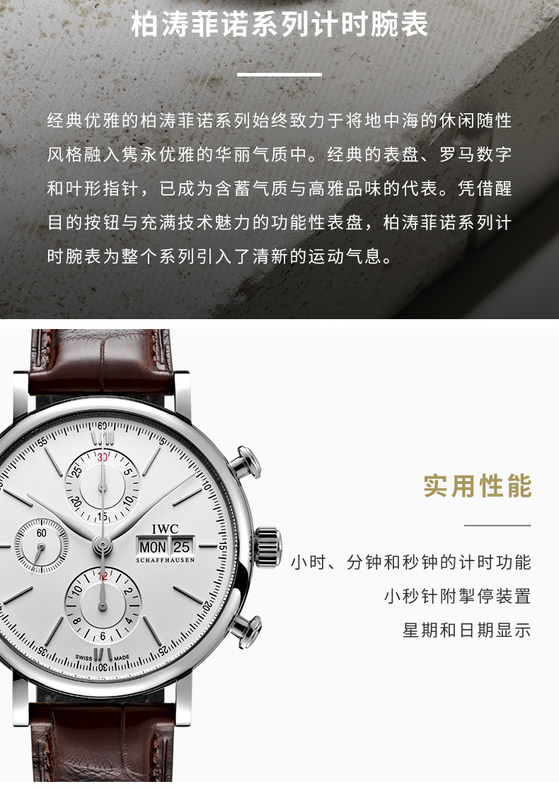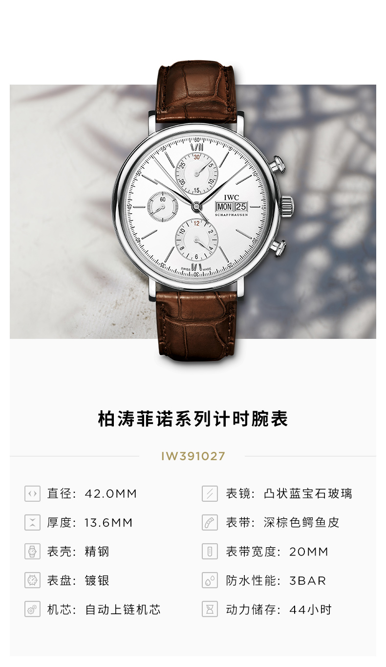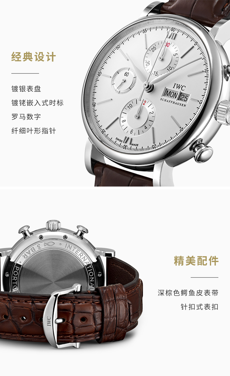 IWC万国 柏涛菲诺系列自动机械三眼手表白盘棕带男表 IW391027(单位:只) 银色