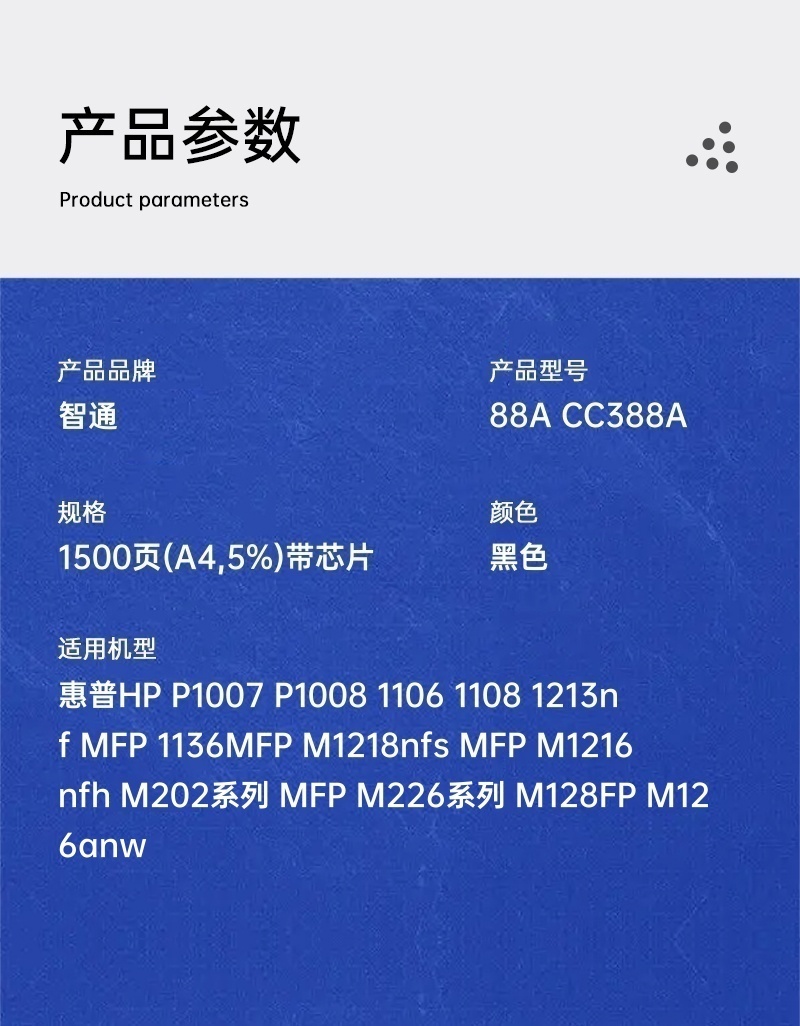 智通(ZT) ZT-CC388A 标准版 打印量1500页 适用HP P1007 硒鼓 1.00 只/支 (计价单位:支) 黑色