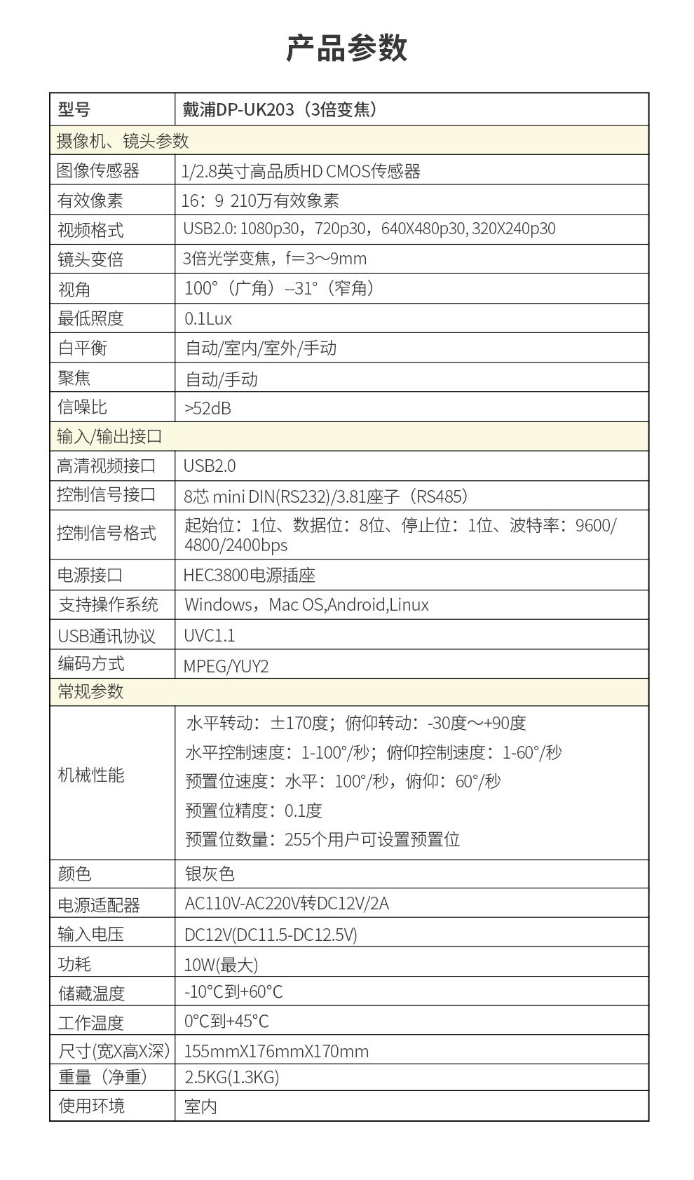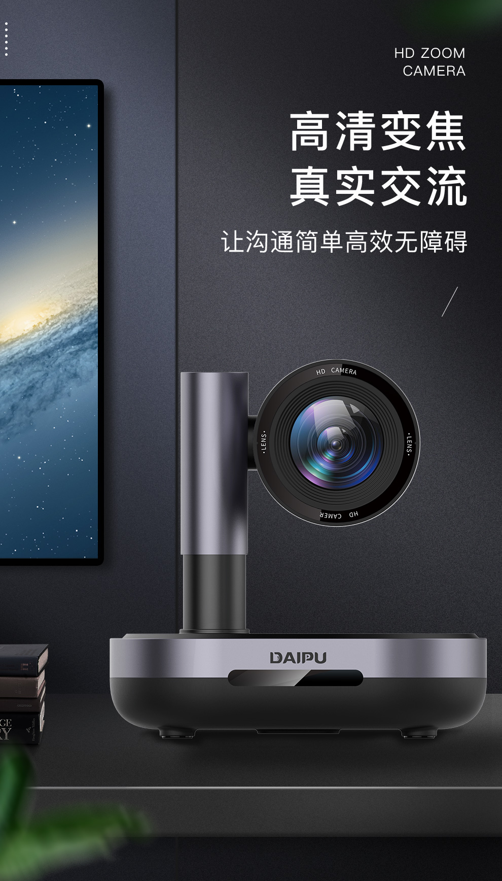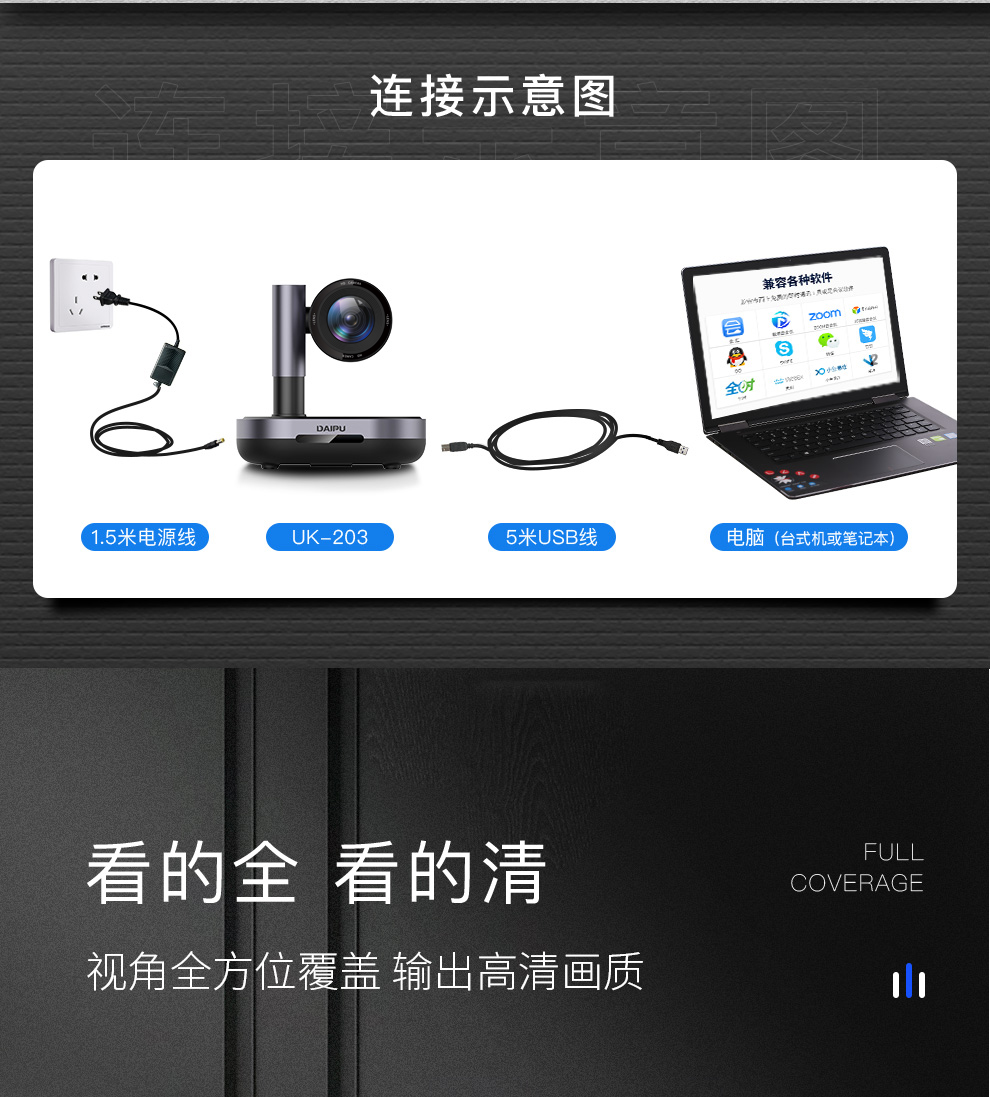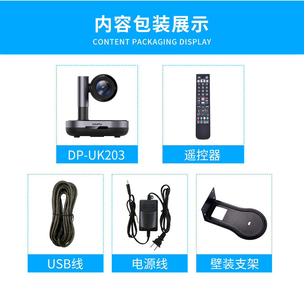 戴浦视频会议摄像头高清视频会议广角摄像头软件系统设备 3倍变焦1080P高清DP-UK203 黑色