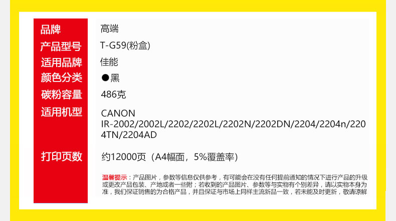 高端TECH-A T-G59粉盒适用佳能IR-2002复印机2002L墨粉盒2202/2202L碳粉盒2202N/2202DN/2204/2204n/2204TN 黑色