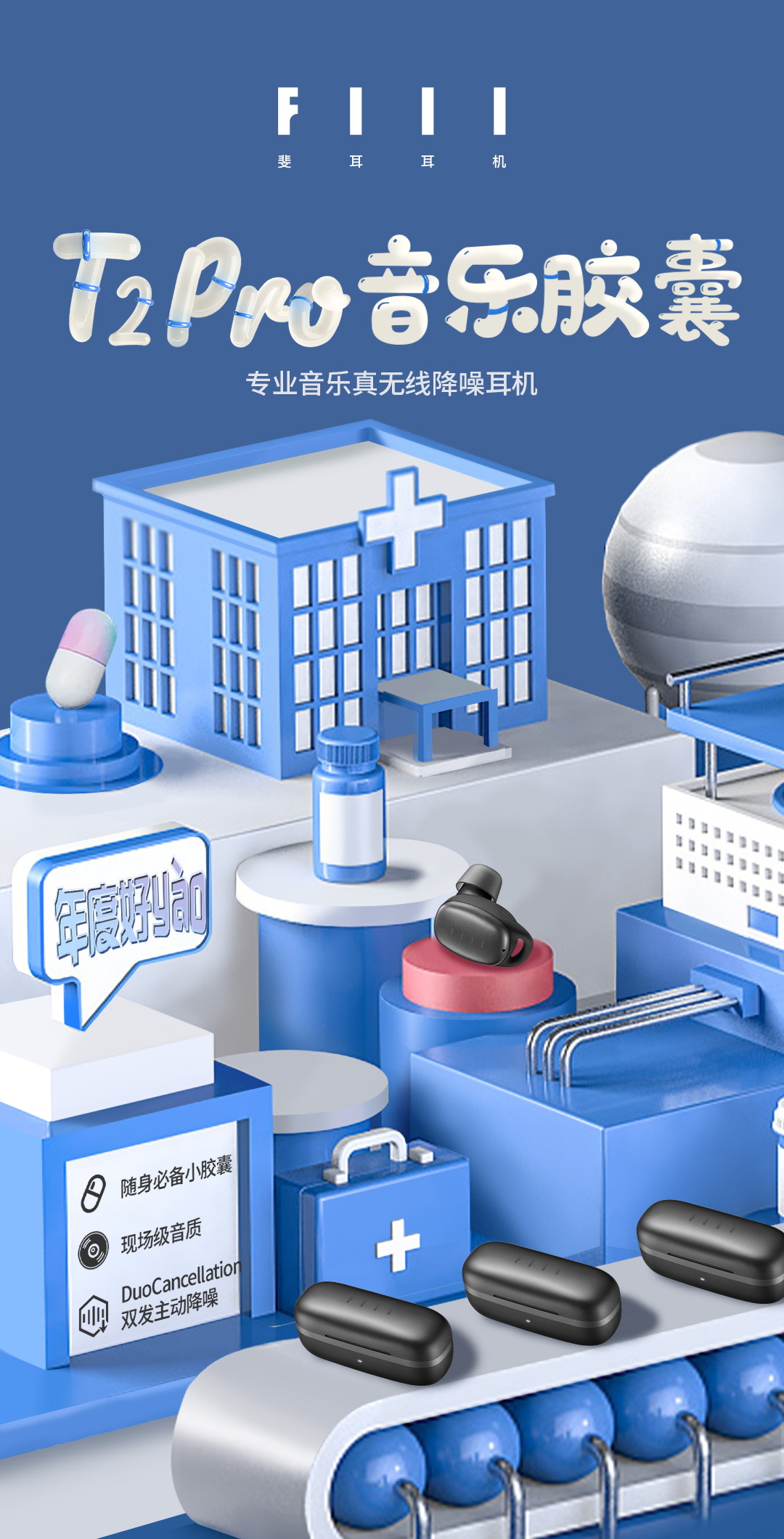FIIL T2 Pro真无线降噪蓝牙耳机 钛空灰