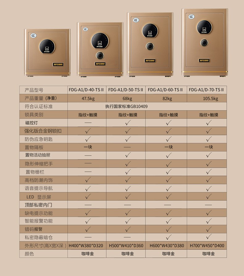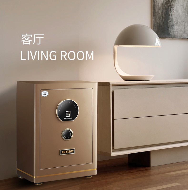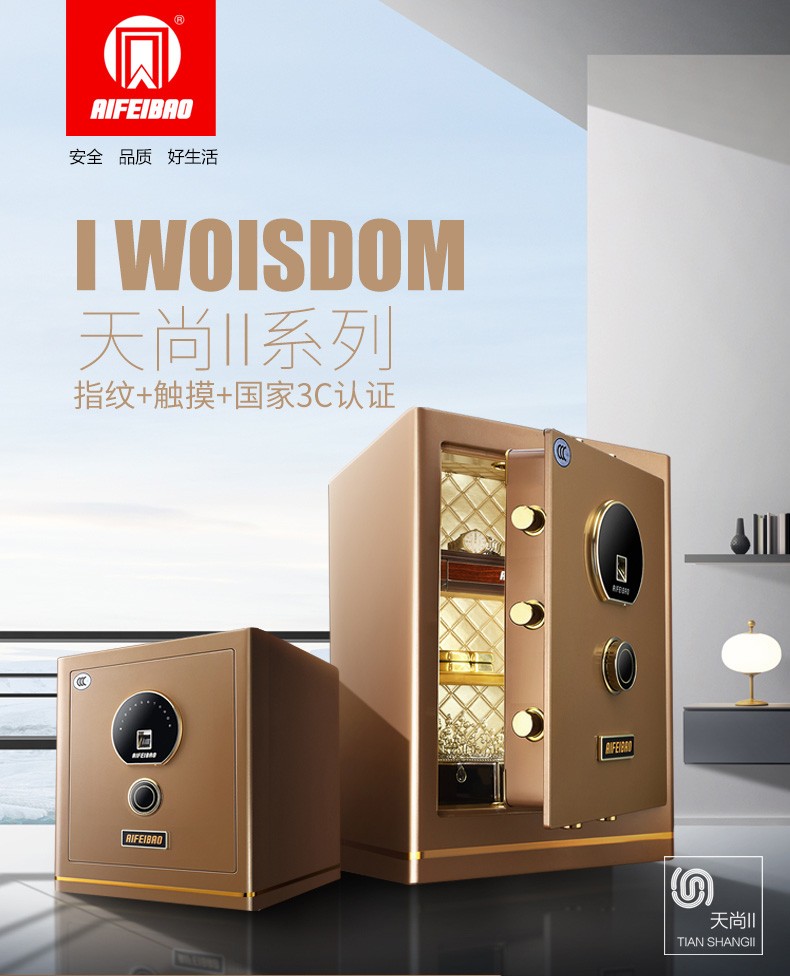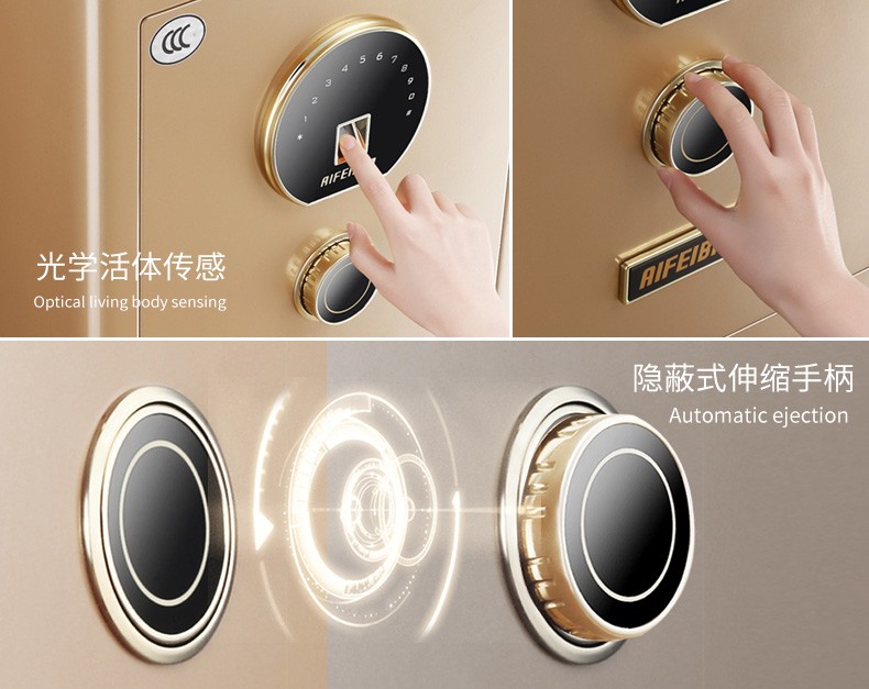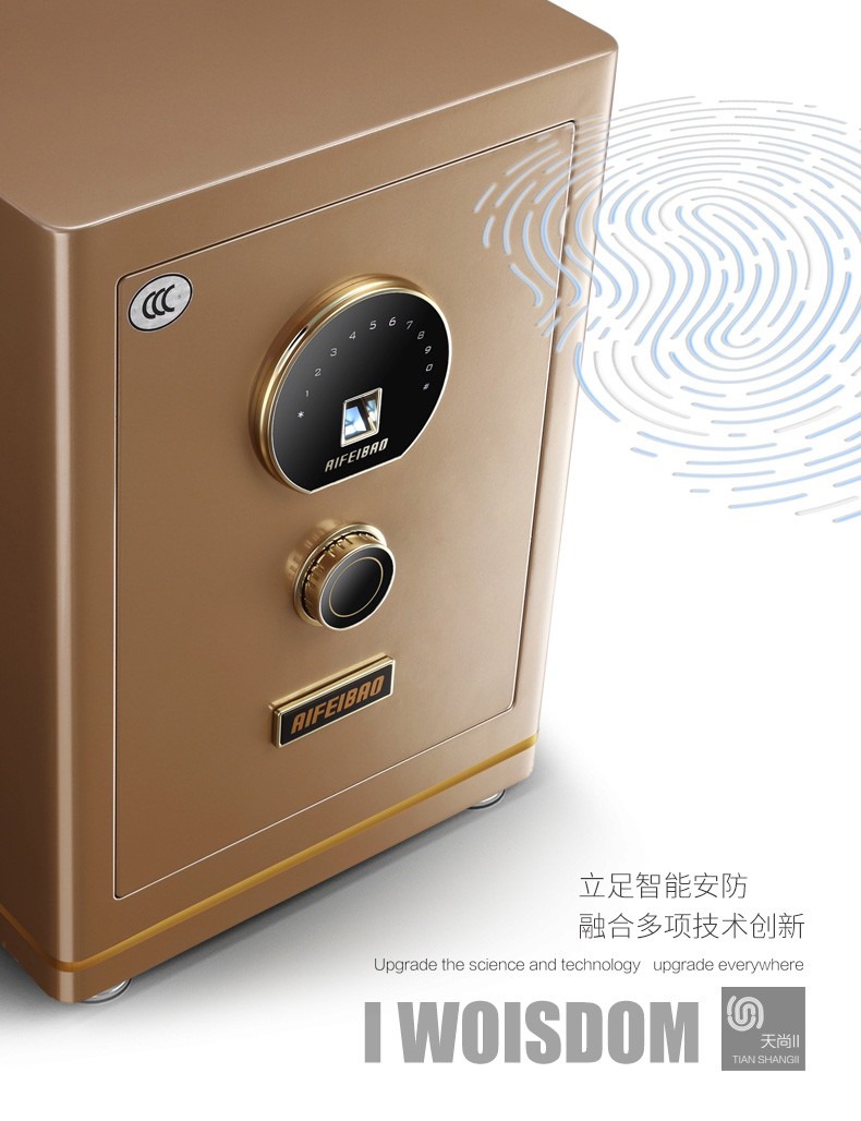 艾斐堡新天尚3c认证保险箱保险柜家用办公全钢防盗指纹+触摸床头柜国家CCC认证保险柜包安装 新天尚40指纹 金色