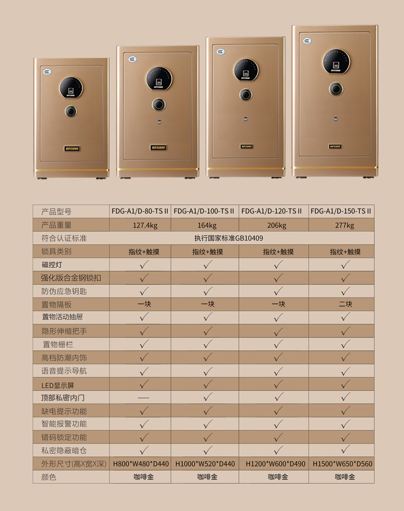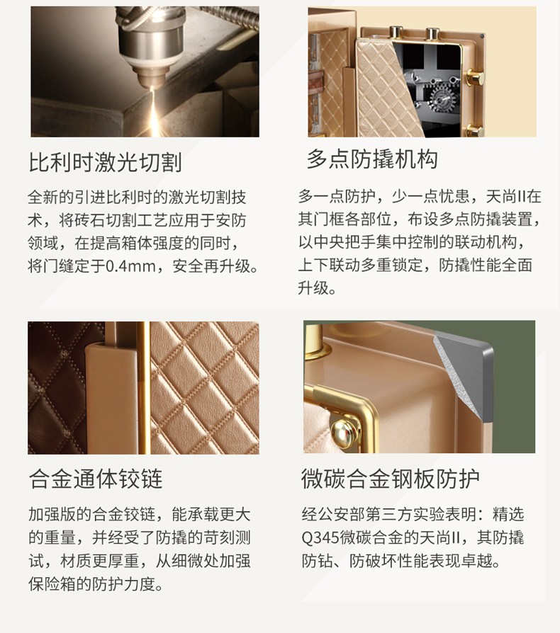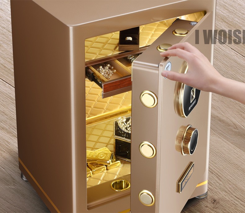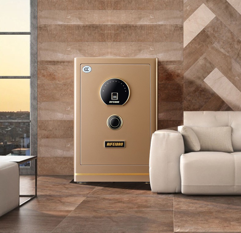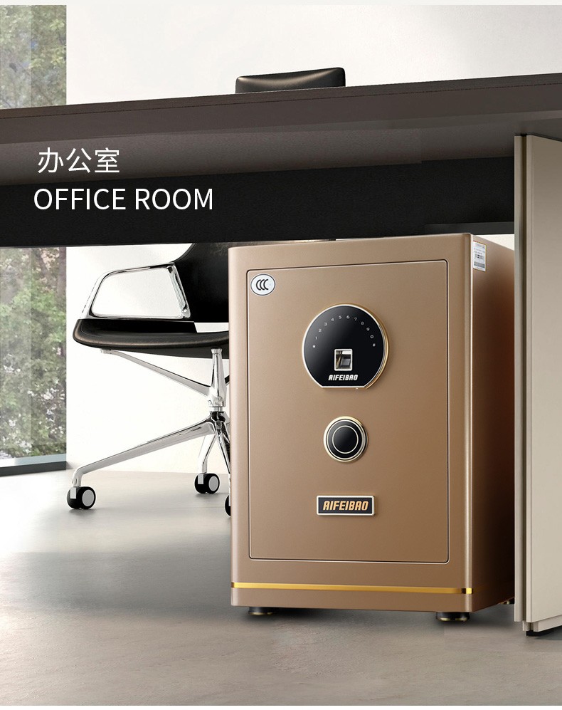 艾斐堡新天尚3c认证保险箱保险柜家用办公全钢防盗指纹+触摸床头柜国家CCC认证保险柜包安装 新天尚40指纹 金色