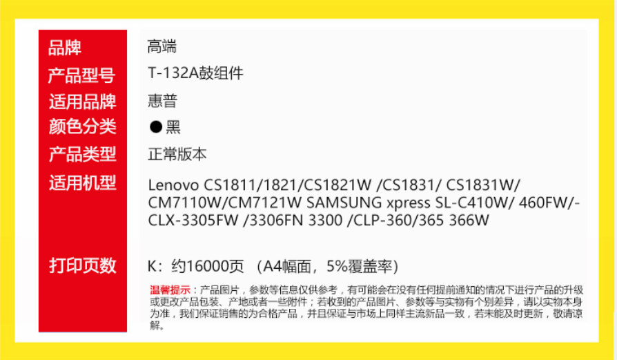 高端TECH-A T-132A鼓组件专业版适用联想CS1811/1821鼓架CM7110三星C410W/460FW/3305FW硒鼓3300 CLP-360/365打印机 黑色