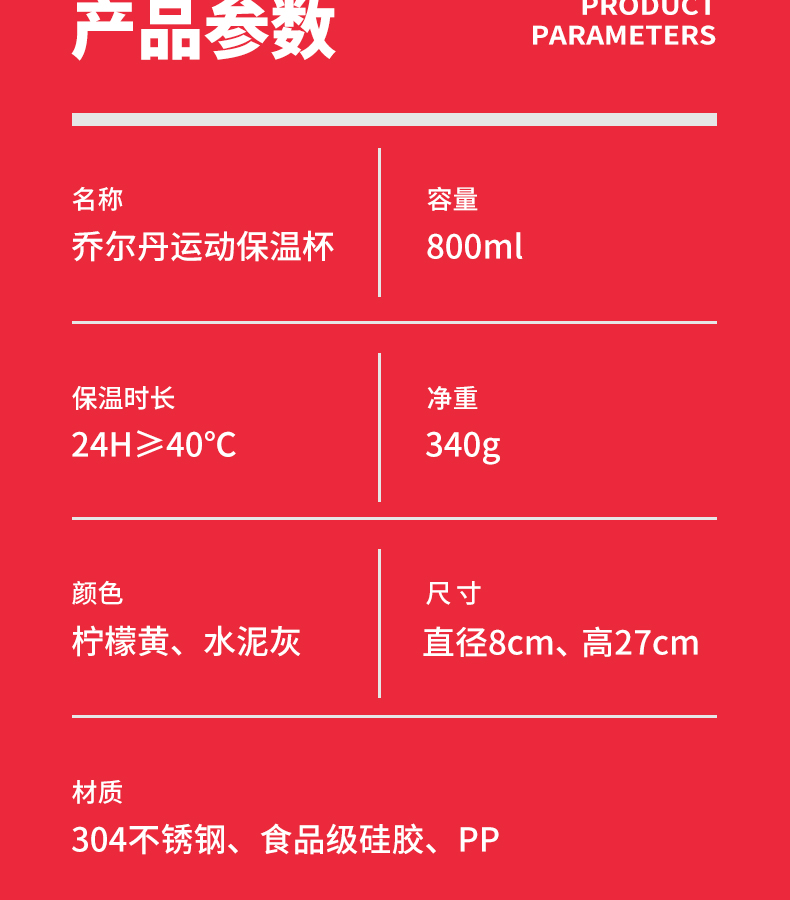 火象乔尔丹运动保温杯 800ML HXB-YDB087(单位:个)图片色 麦饭石