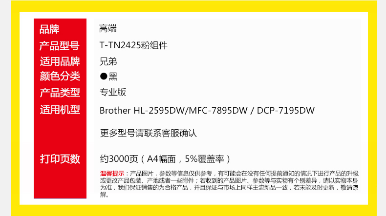 高端TECH-A T-TN2425粉组件专业版适用兄弟2595DW/7895打印机7195DW施乐M248/P248 288理光P200墨粉盒P201W/M340 黑色