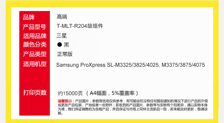 高端TECH-A T-MLT-R204鼓组件专业版适用SL-M3325/3825墨粉盒4025打印机 M3375硒鼓3875鼓架4075 黑色