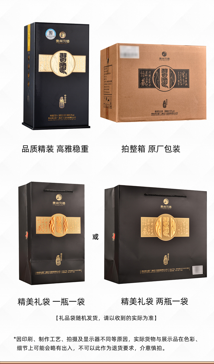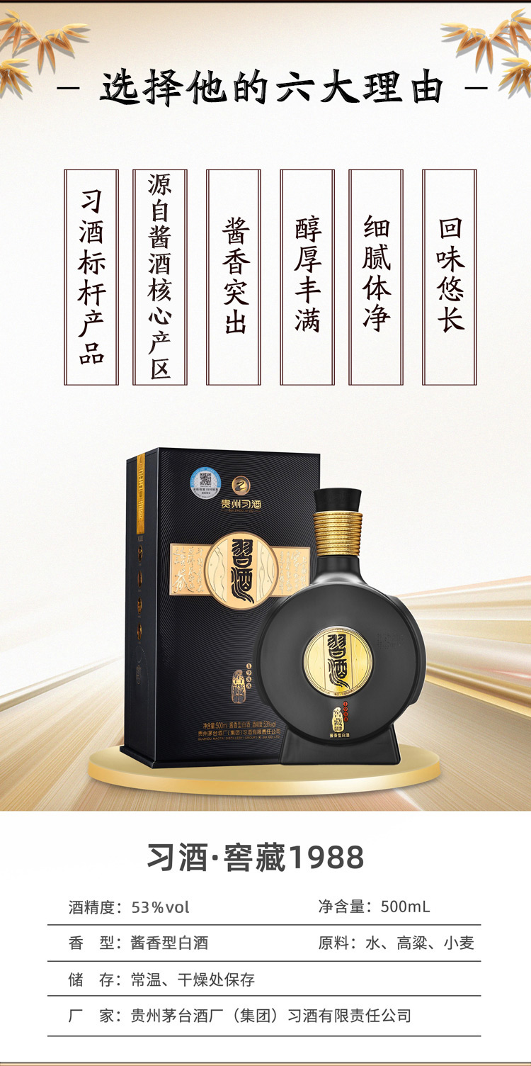 茅台集团贵州习酒53度酱香型白酒礼盒装窖藏1988 500ml 单瓶 咖啡色