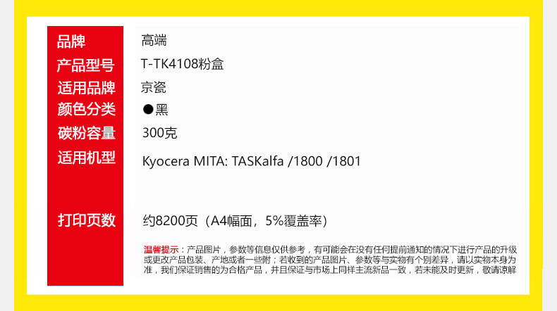高端TECH-A T-TK4108粉盒专业版适用京瓷Kyocera MITA打印机TASKalfa 1800复印机墨粉盒1801 碳粉盒 黑色