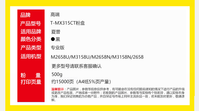 高端TECH-A T-MX315CT粉盒专业版适用夏普M2658U复印机M3158U墨粉盒M2658N碳粉盒M3158N/2658 黑色