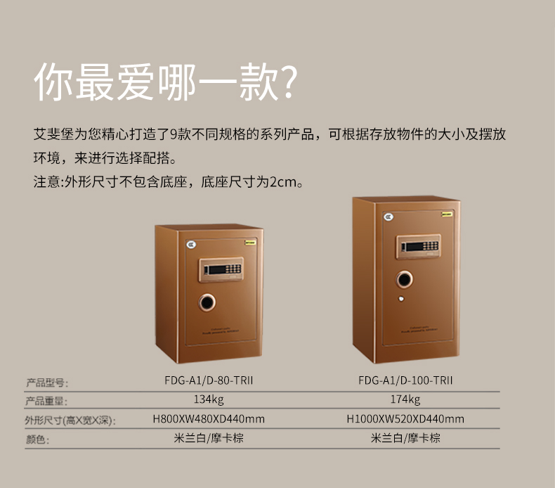 艾斐堡保险柜新天睿家用防盗全钢电子密码 3c认证床头保险箱 天睿102高度 棕色 棕色