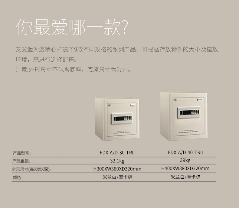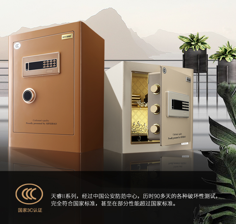 艾斐堡保险柜新天睿家用防盗全钢电子密码 3c认证床头保险箱 天睿122高度 棕色 棕色