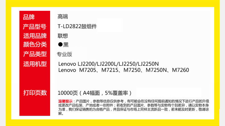 高端LD2822鼓组件适用联想M7205硒鼓 LJ2200L墨盒M7250N打印机硒鼓M7260 支 黑色