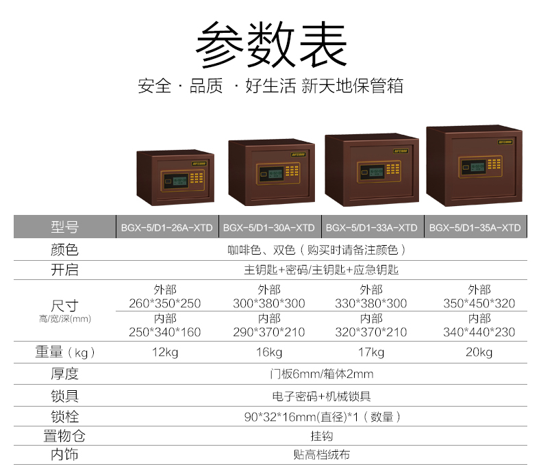 艾斐堡新天地系列保管箱/柜 家用 办公 床头 咖啡色BGX-M/D-150S 咖啡色