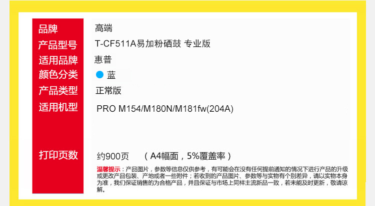 高端TECH-A T-CF511A易加粉硒鼓 蓝色 适用惠普HP PRO M154彩色打印机M180N碳粉盒M181fw墨粉盒204A 蓝色