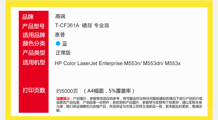高端TECH-A T-CF361A蓝色硒鼓 适用惠普Color LaserJet Enterprise M553n彩色打印机M553dn墨粉盒M553x碳粉盒 蓝色