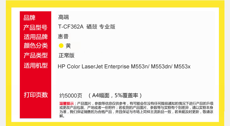 高端TECH-A T-CF362A黄色硒鼓 适用惠普Color LaserJet Enterprise M553n彩色打印机M553dn墨粉盒M553x碳粉盒 黄色