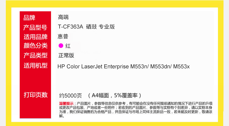 高端TECH-A T-CF363A红色硒鼓 适用惠普Color LaserJet Enterprise M553n彩色打印机M553dn墨粉盒M553x碳粉盒 红色