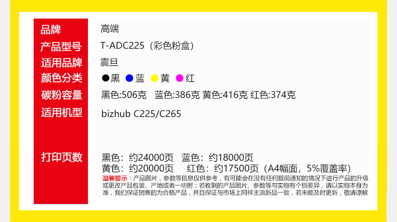 高端TECH-A T-ADC225粉盒彩色专业版 适用震旦bizhub C225复印机墨粉盒C265碳粉盒彩色 大容量 红色