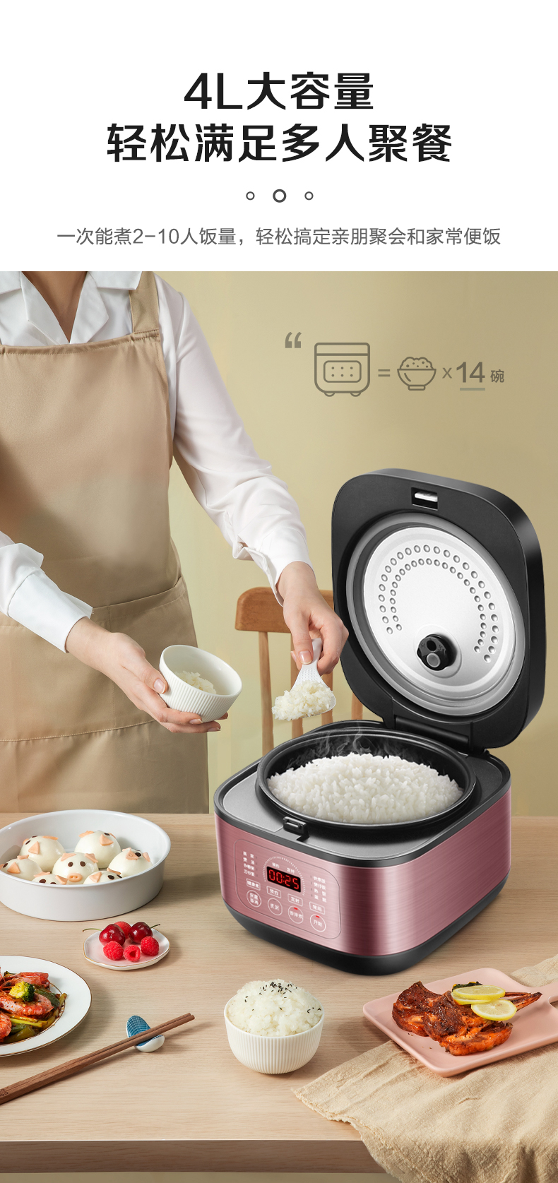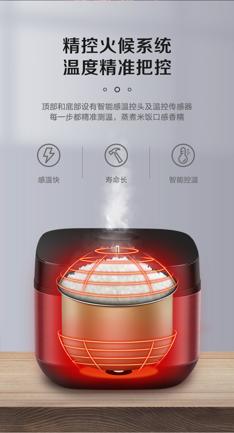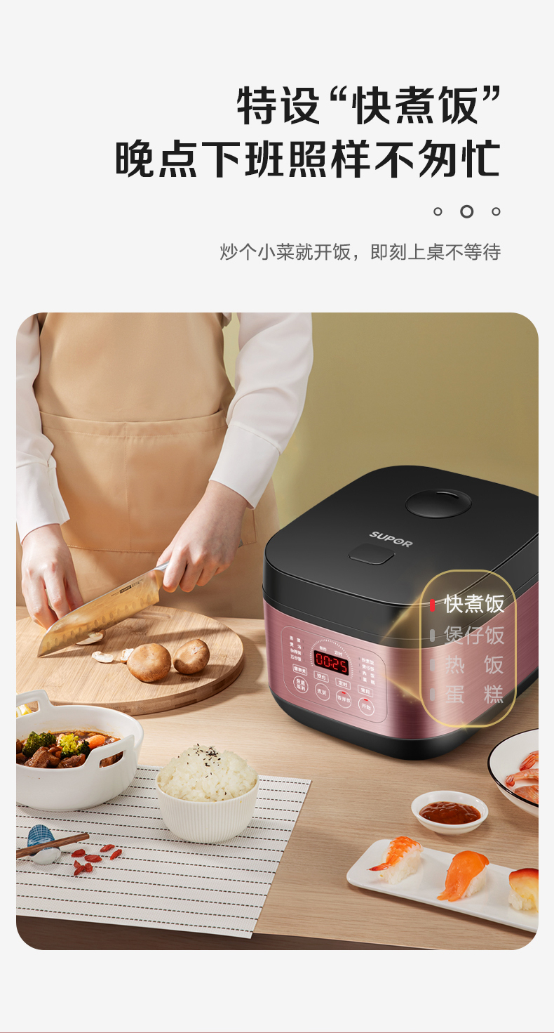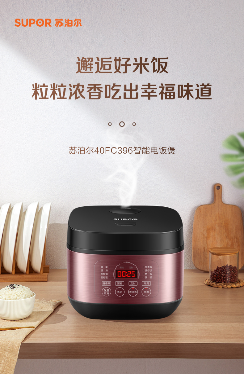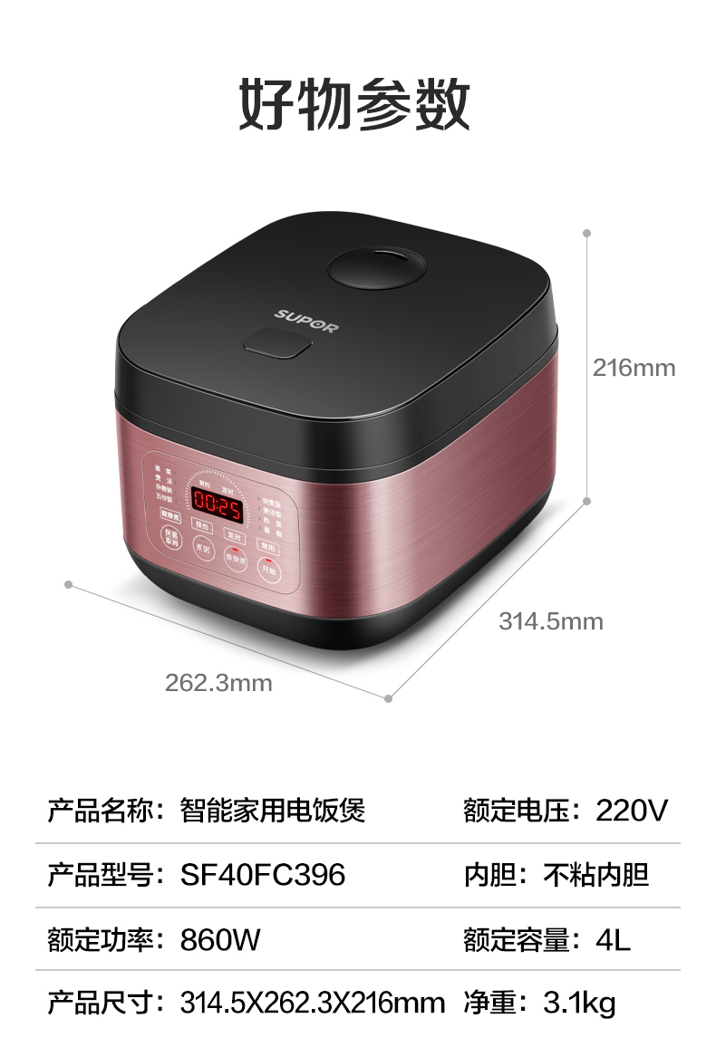 苏泊尔(SUPOR)ZMD安心系列 4升大容量多功能电饭煲SF40FC396 台 玫瑰金色