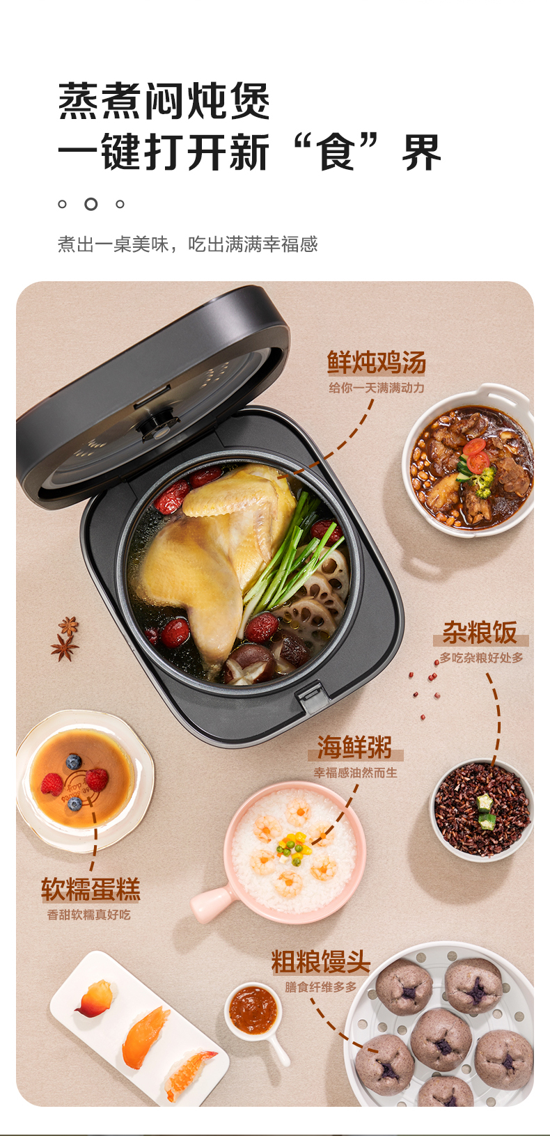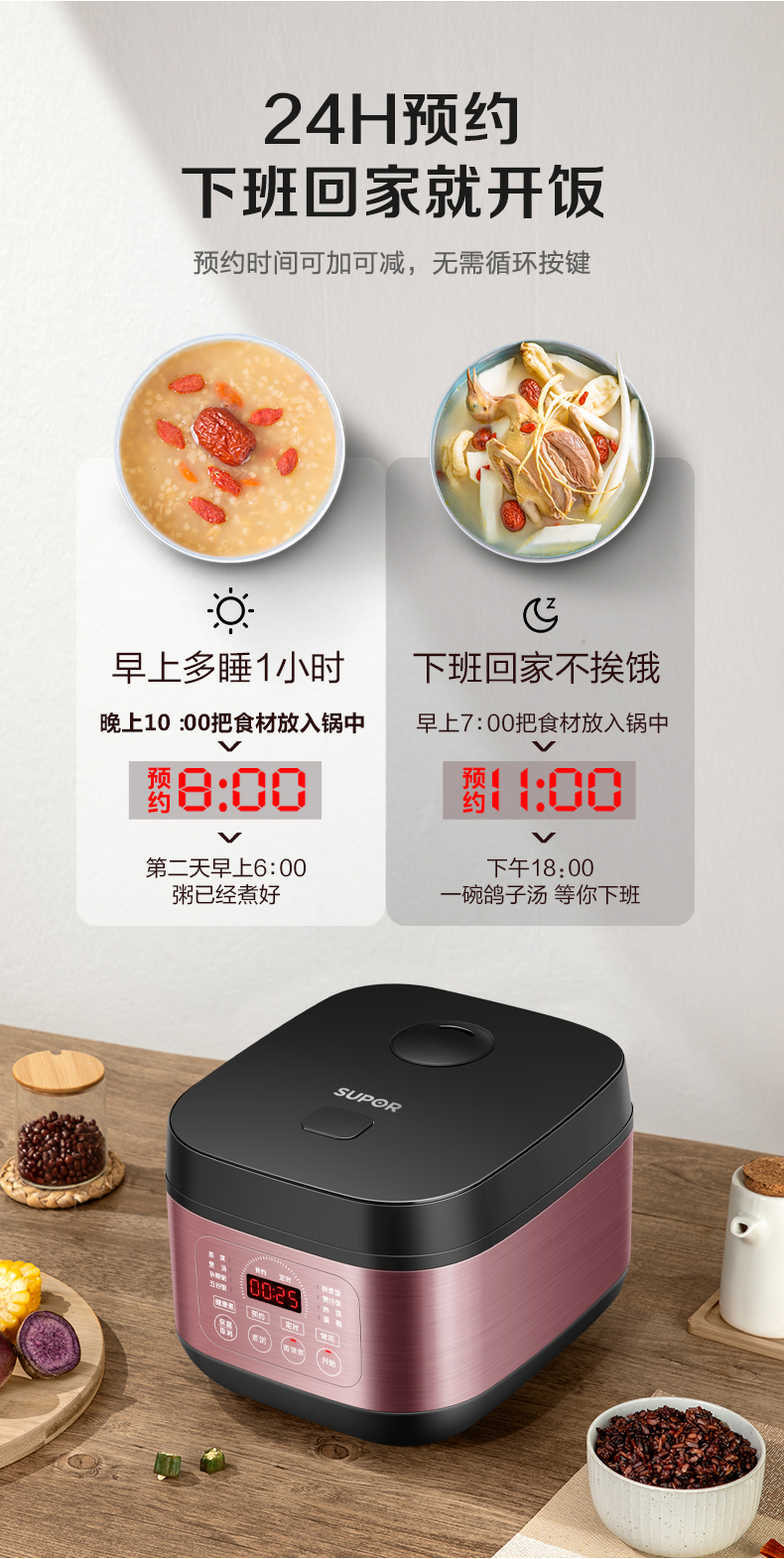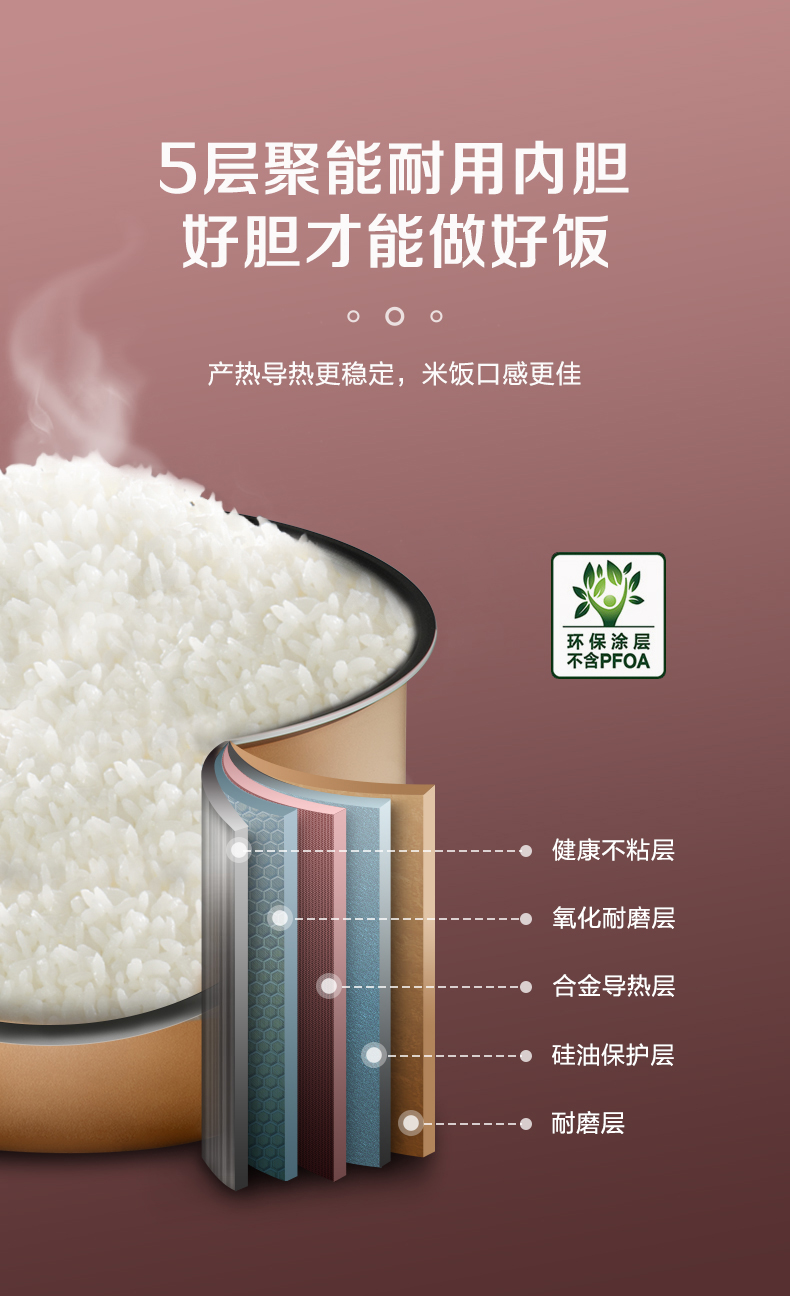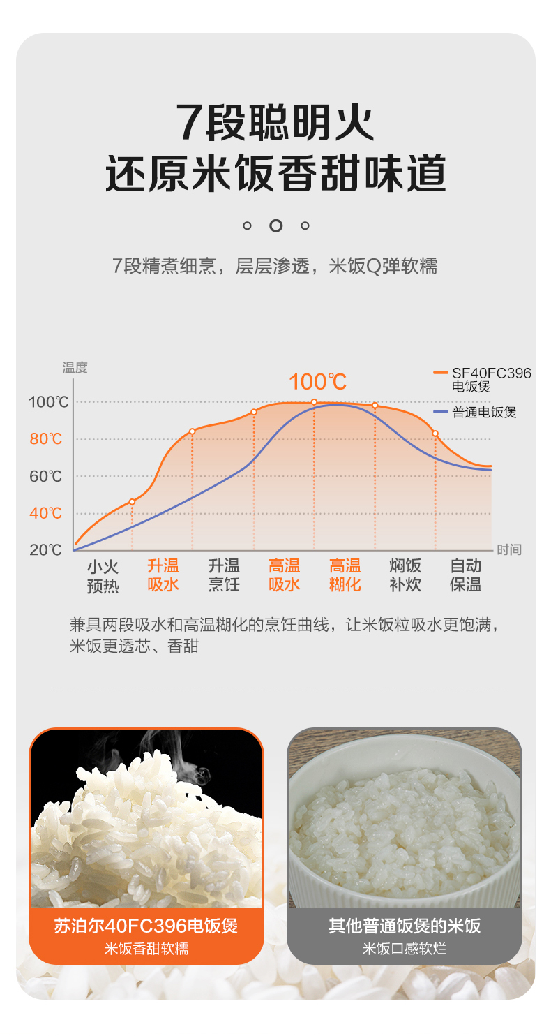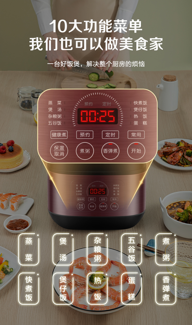 苏泊尔(SUPOR)ZMD安心系列 4升大容量多功能电饭煲SF40FC396 台 玫瑰金色