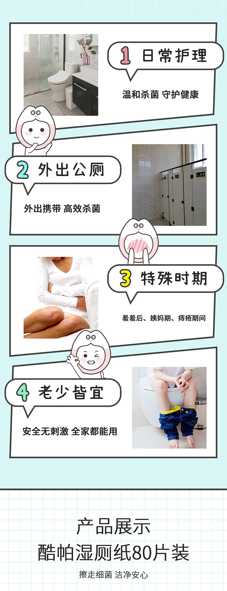 酷帕80片除菌洁厕湿巾 80抽*4包