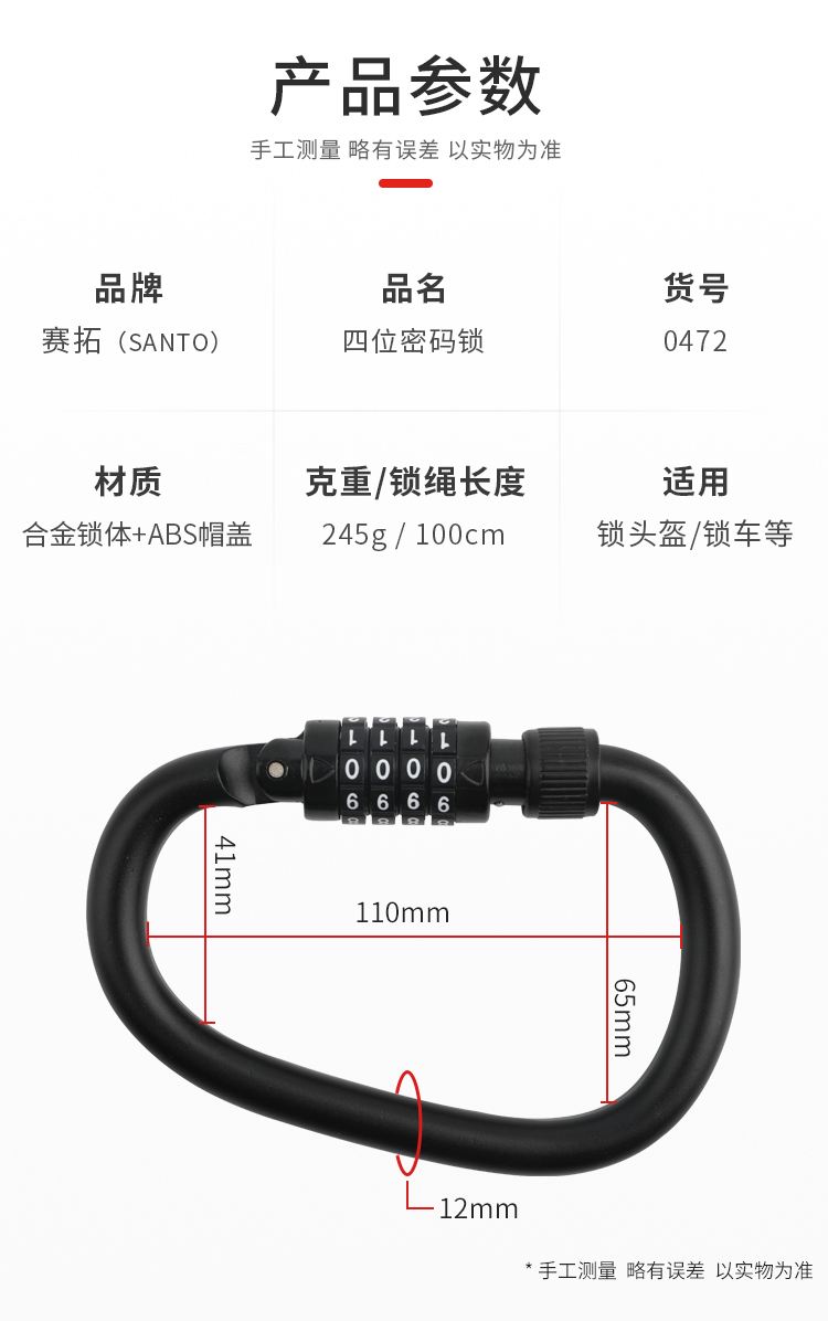 赛拓旅行锁4X1800mm 0472 黑色