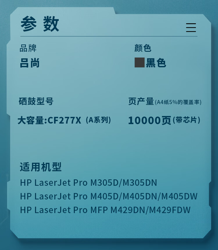 吕尚 CF277X(A系列)大容量硒鼓 适用429/405/305系列 打印机硒鼓墨盒带芯片(约10000页) 硒鼓 (计价单位:只) 黑色 黑色