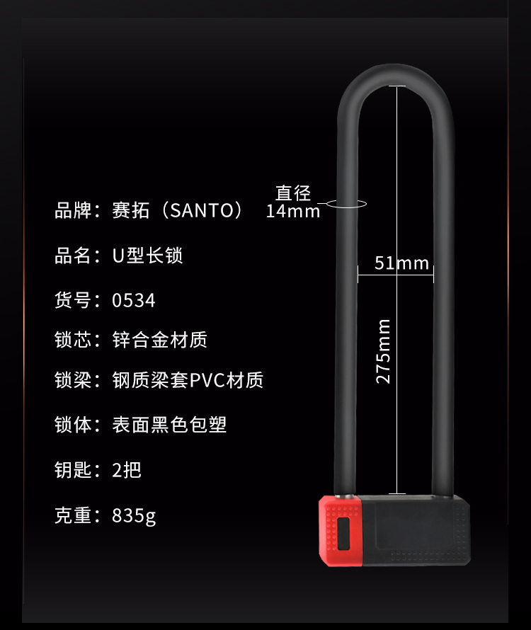 赛拓U型锁12*80*330mm 0534 黑色