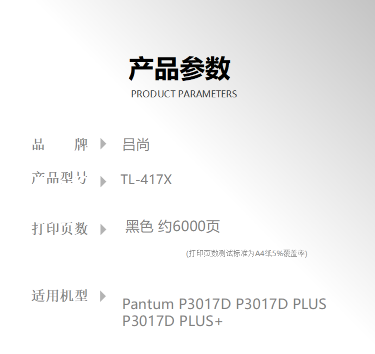 吕尚 TL-417X(A系列)墨粉盒适用于Pantum P3017D P3017D PLUS P3017D PLUS+ 黑色