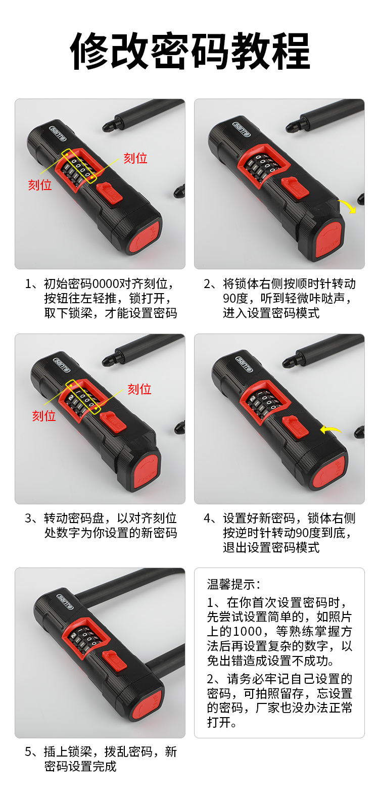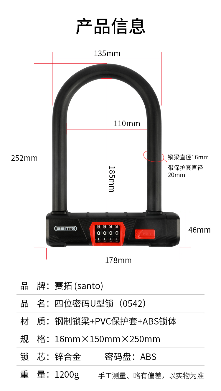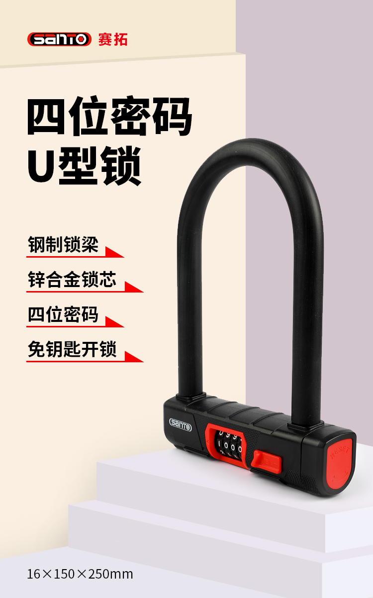 赛拓U型四位密码锁175*250mm 0542 黑色