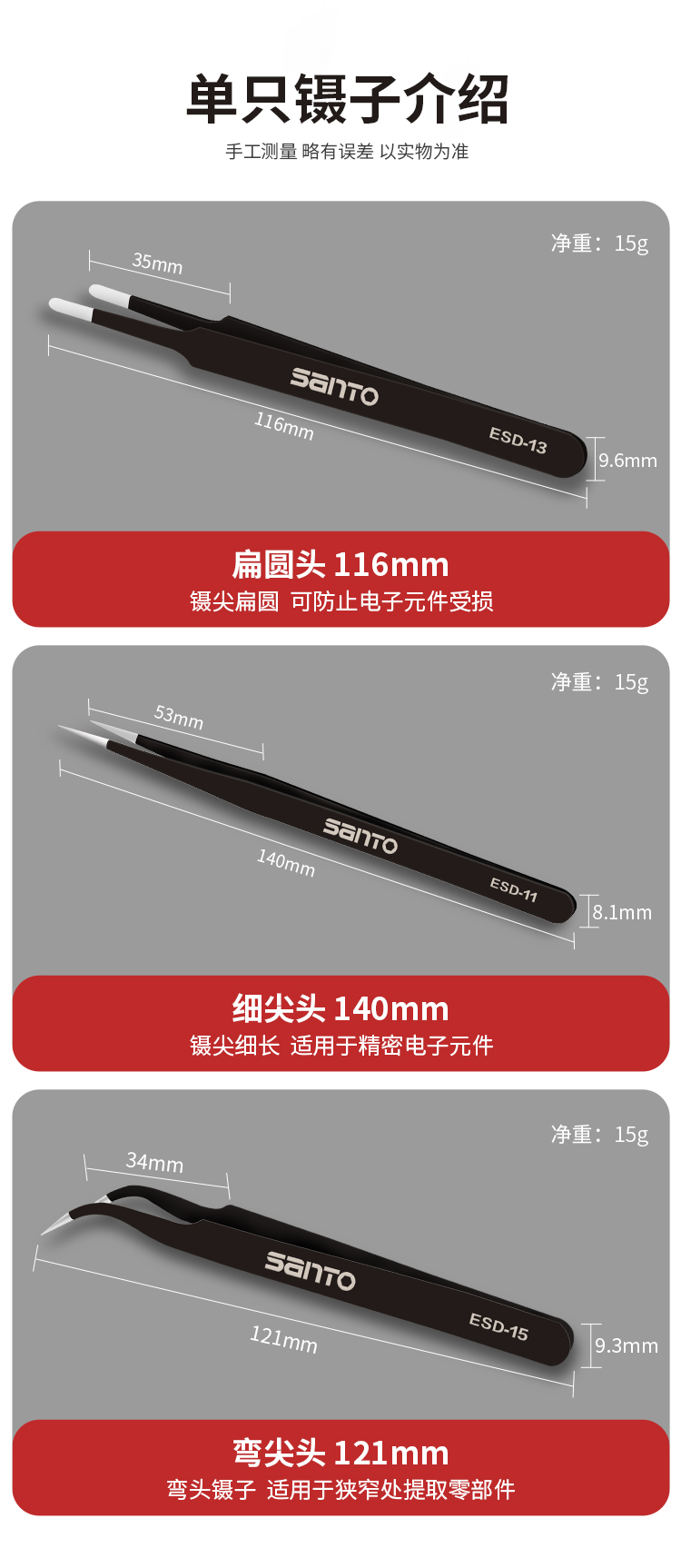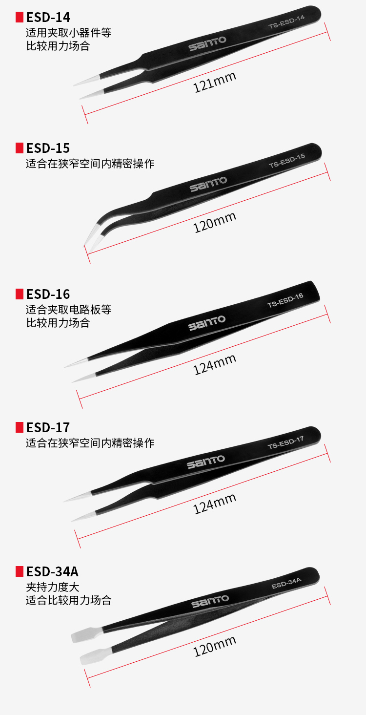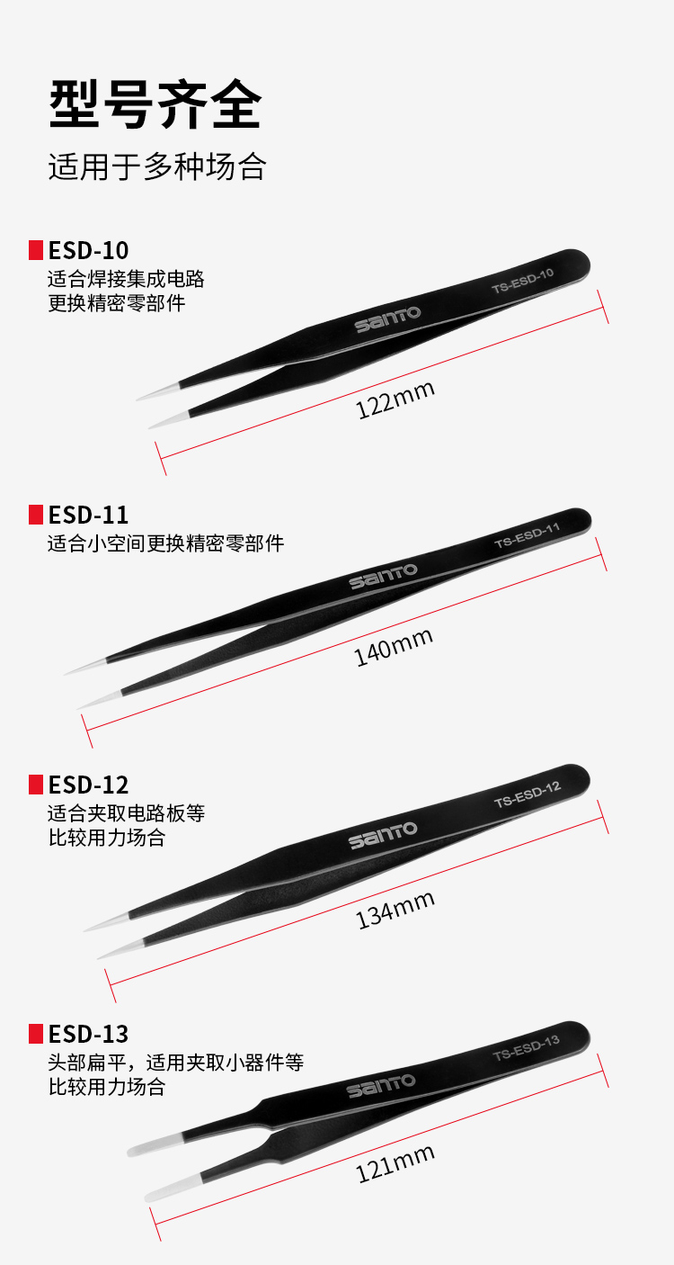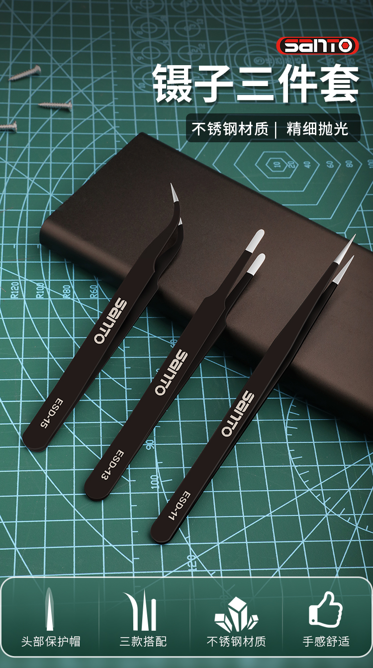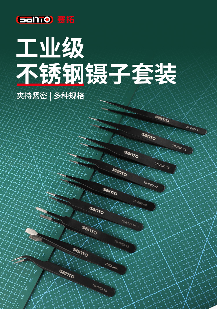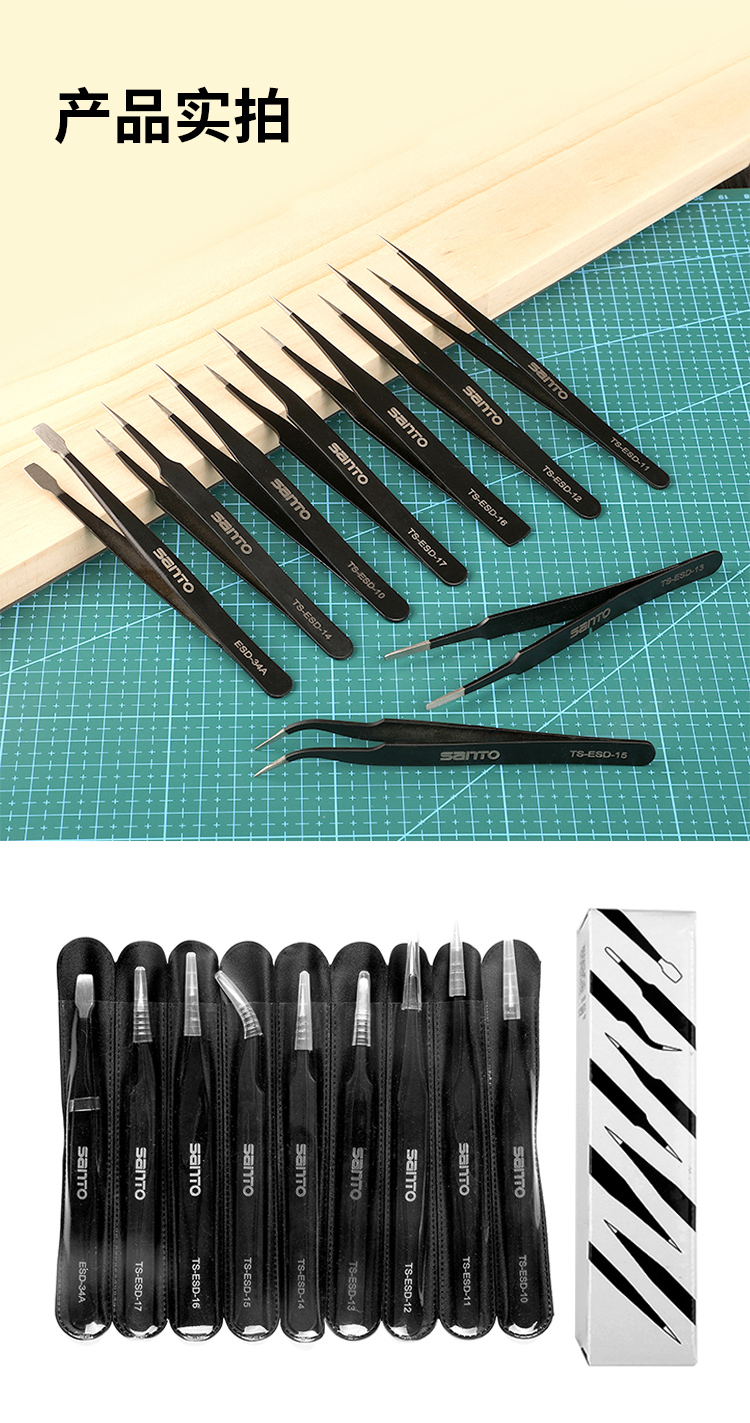 赛拓9件套防静电镊子9件套 黑色