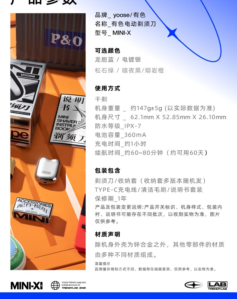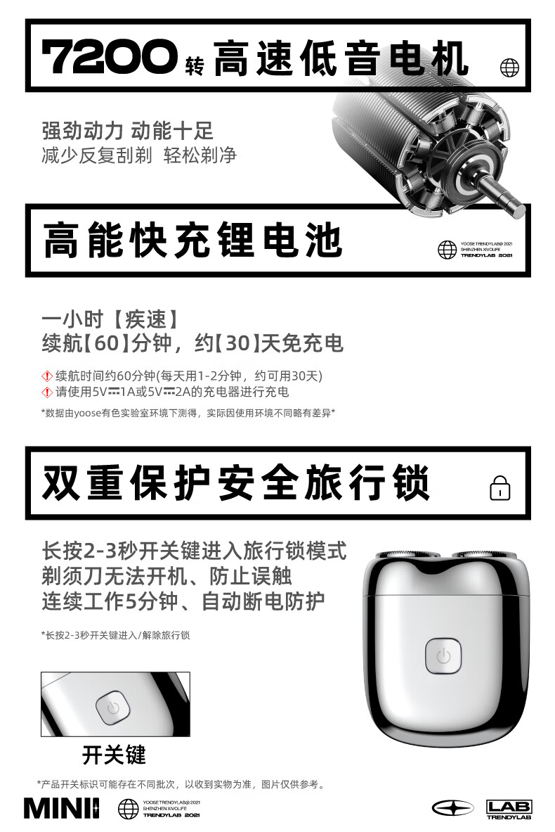 有色MINI-X电动剃须刀 暗夜黑