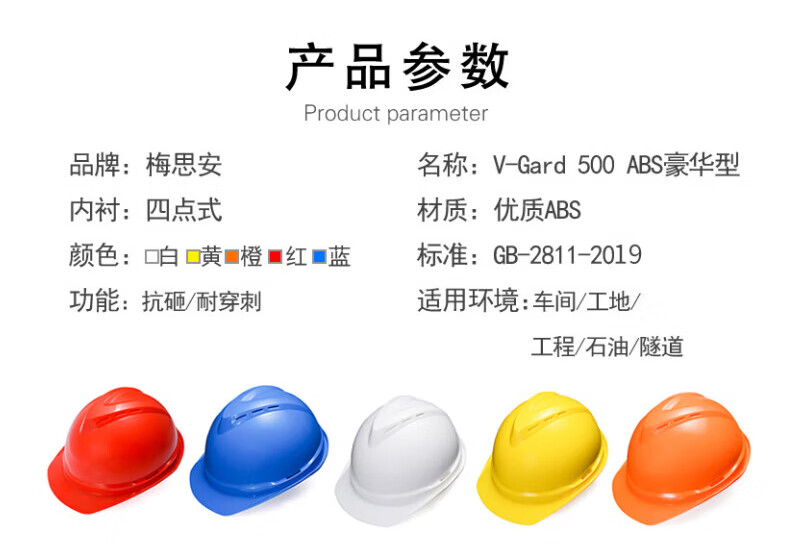 梅思安\MSA 安全帽工地施工建筑电力工程领导监理 V-Gard豪华透气加厚ABS新国标 红色