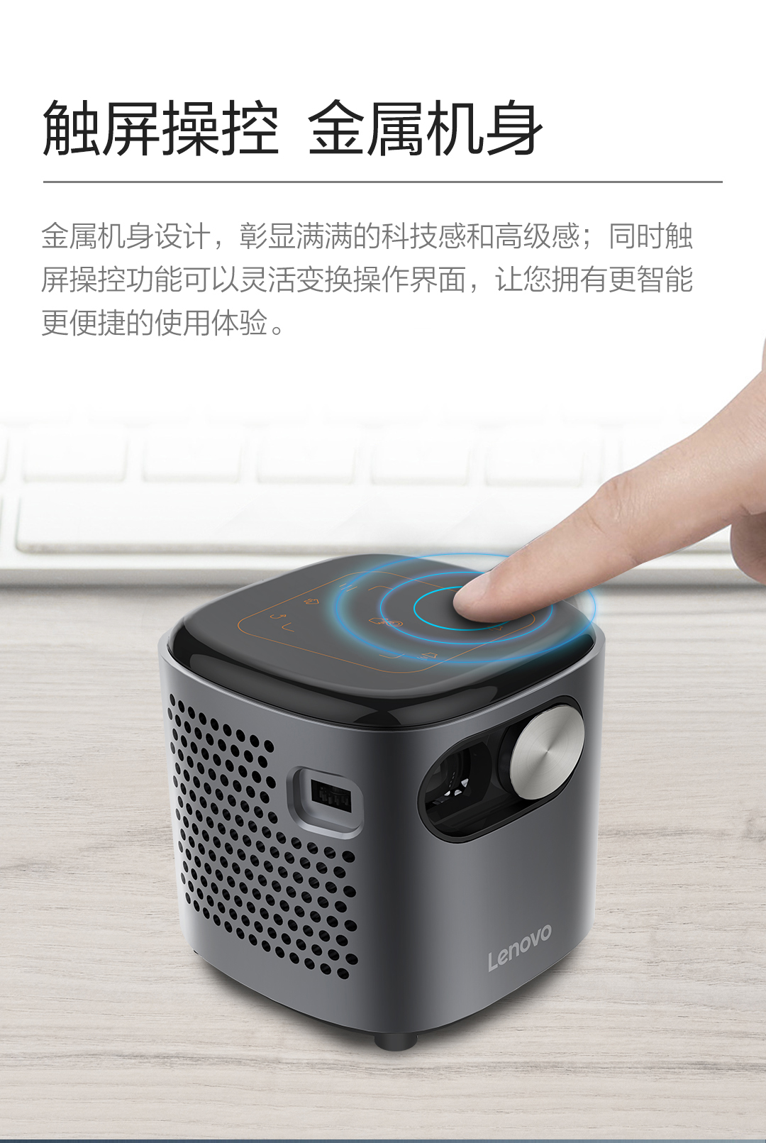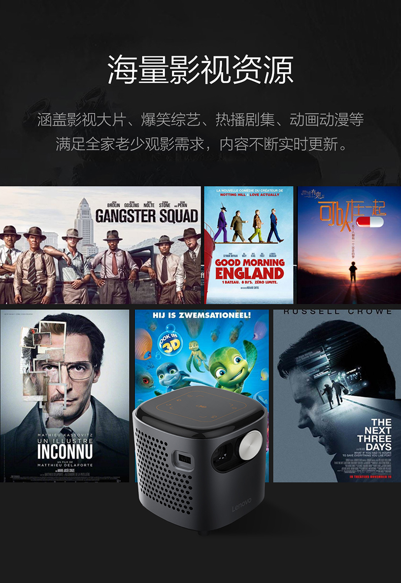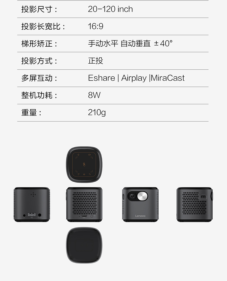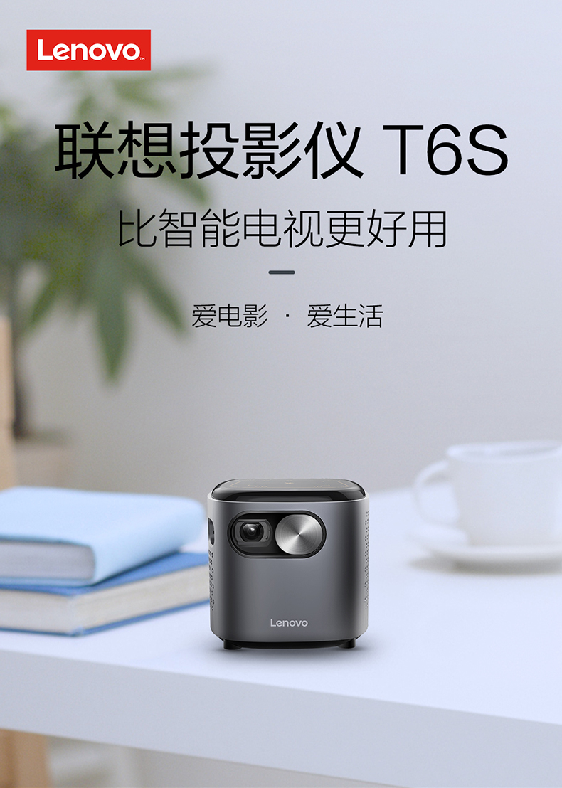 联想T6S 投影仪家用 投影机 智能高清投影电视(1080P高清解码 迷你便携 内置电池 无线投屏)小新520 灰色