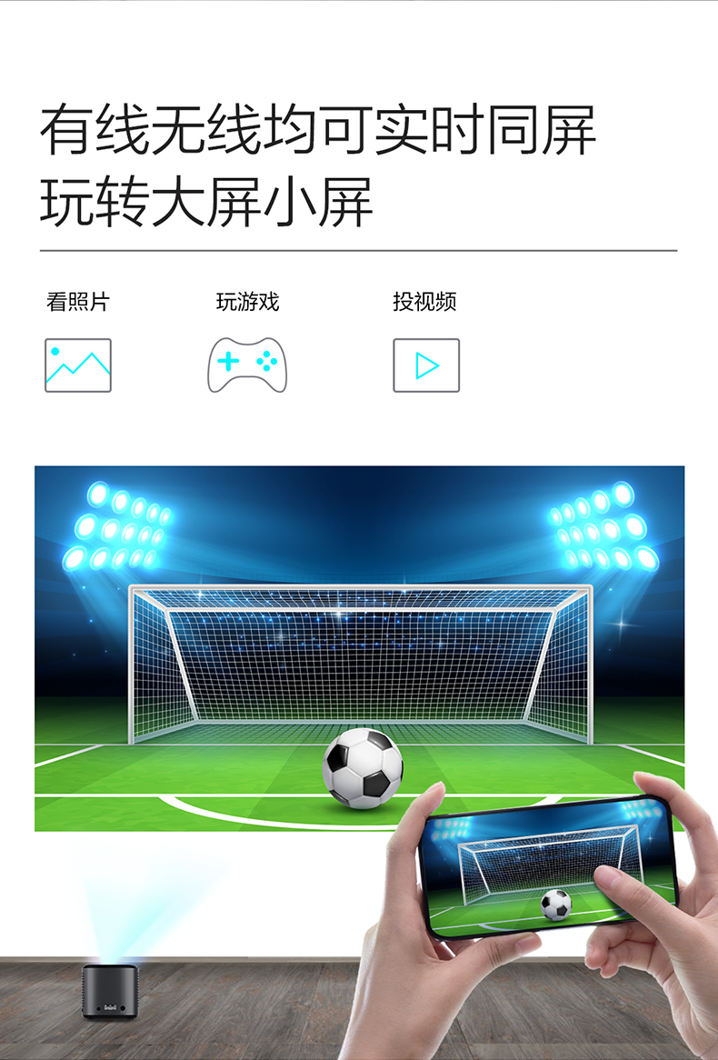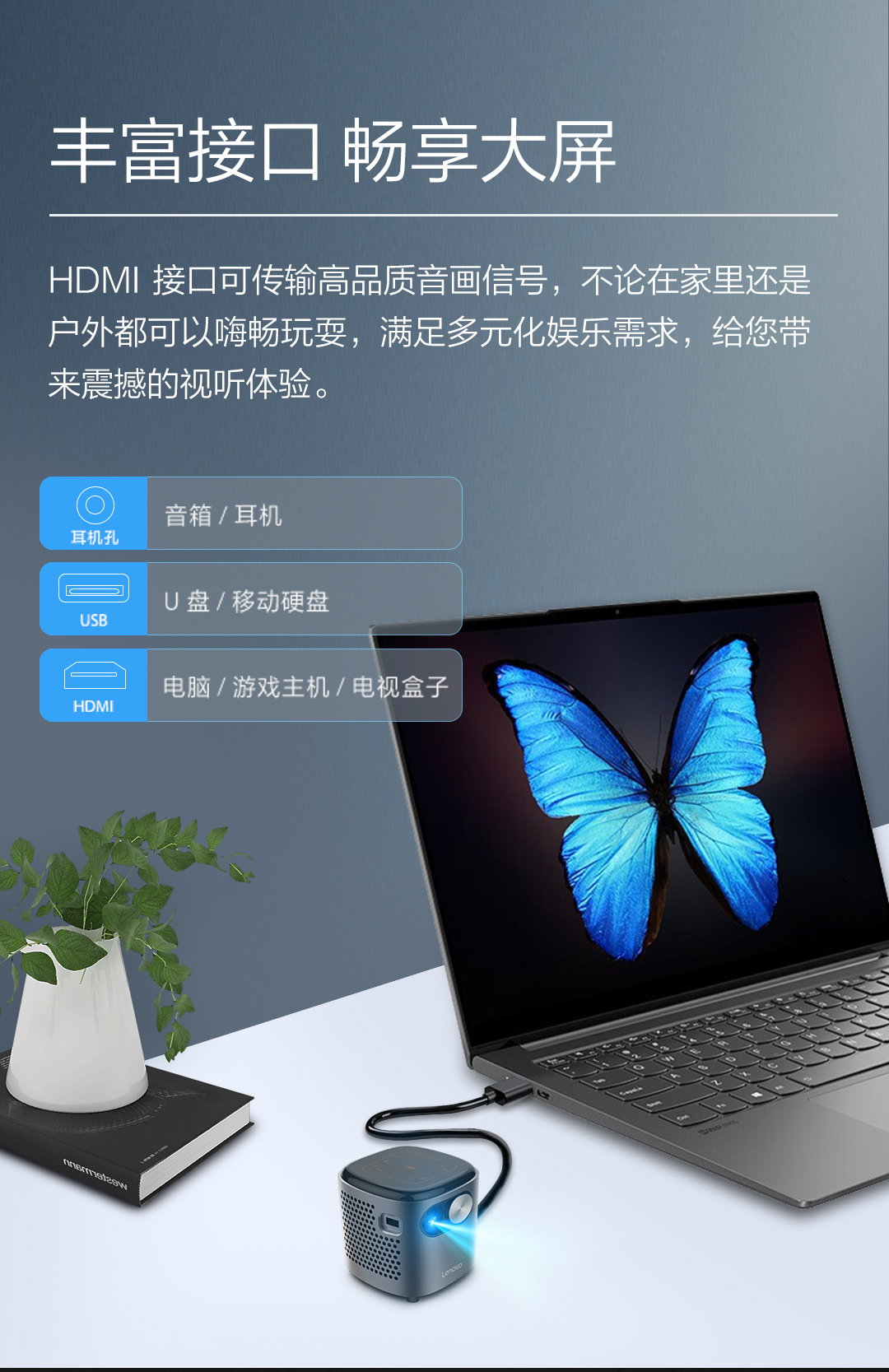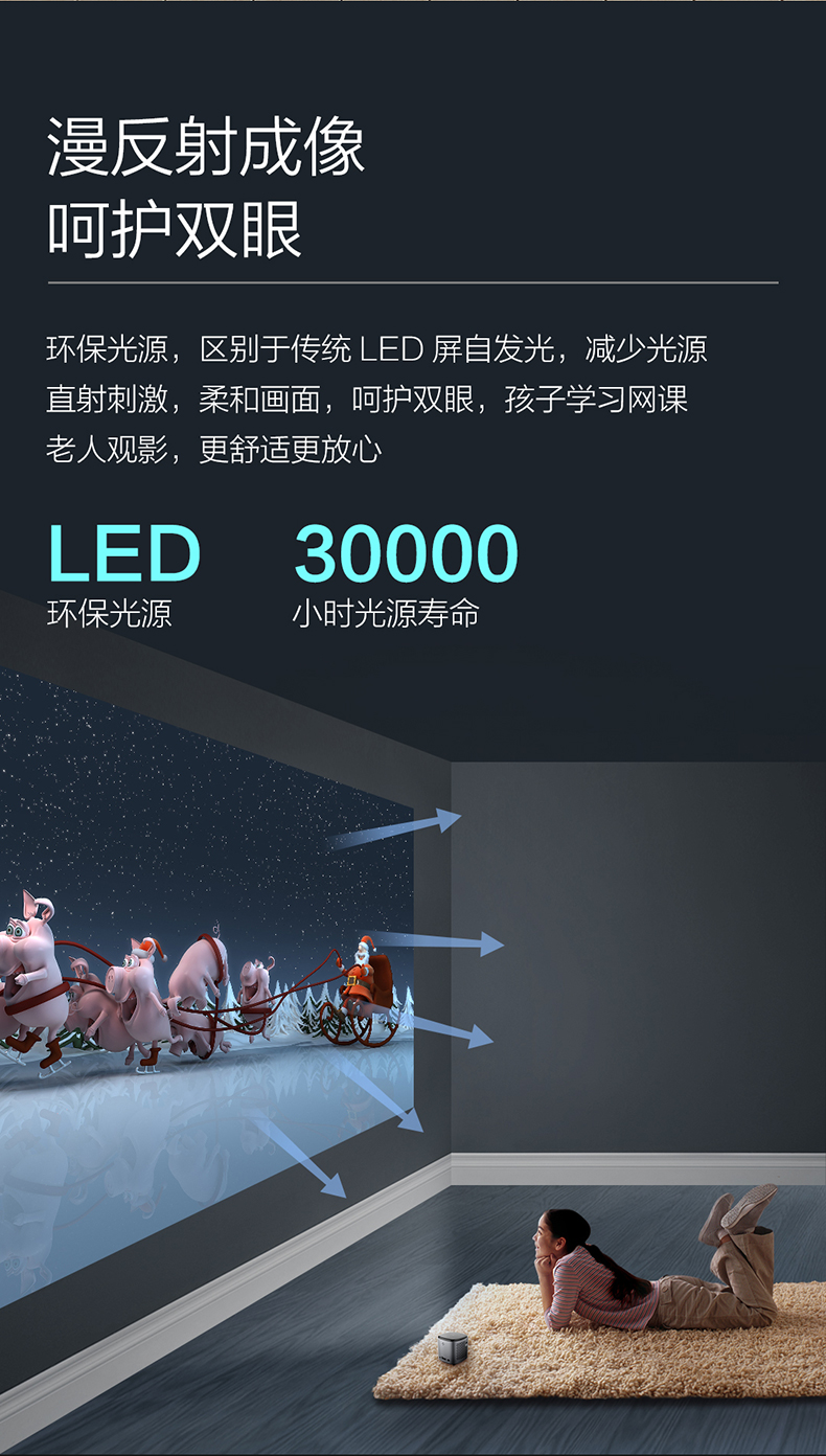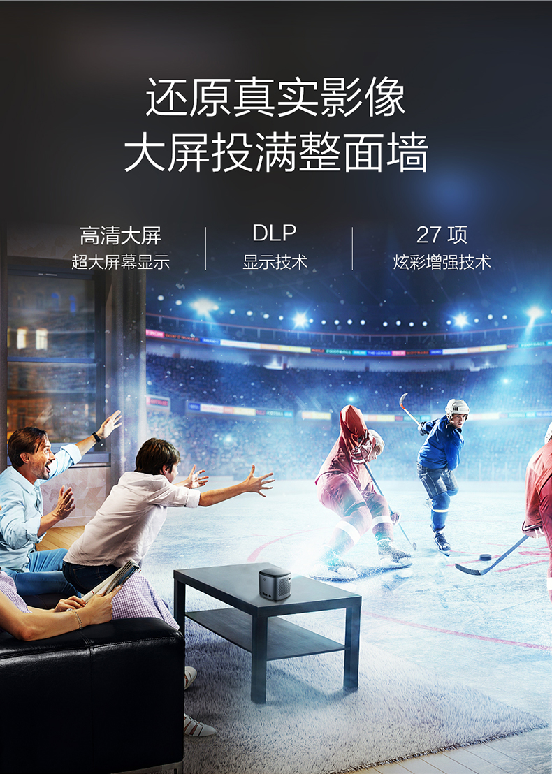 联想T6S 投影仪家用 投影机 智能高清投影电视(1080P高清解码 迷你便携 内置电池 无线投屏)小新520 灰色